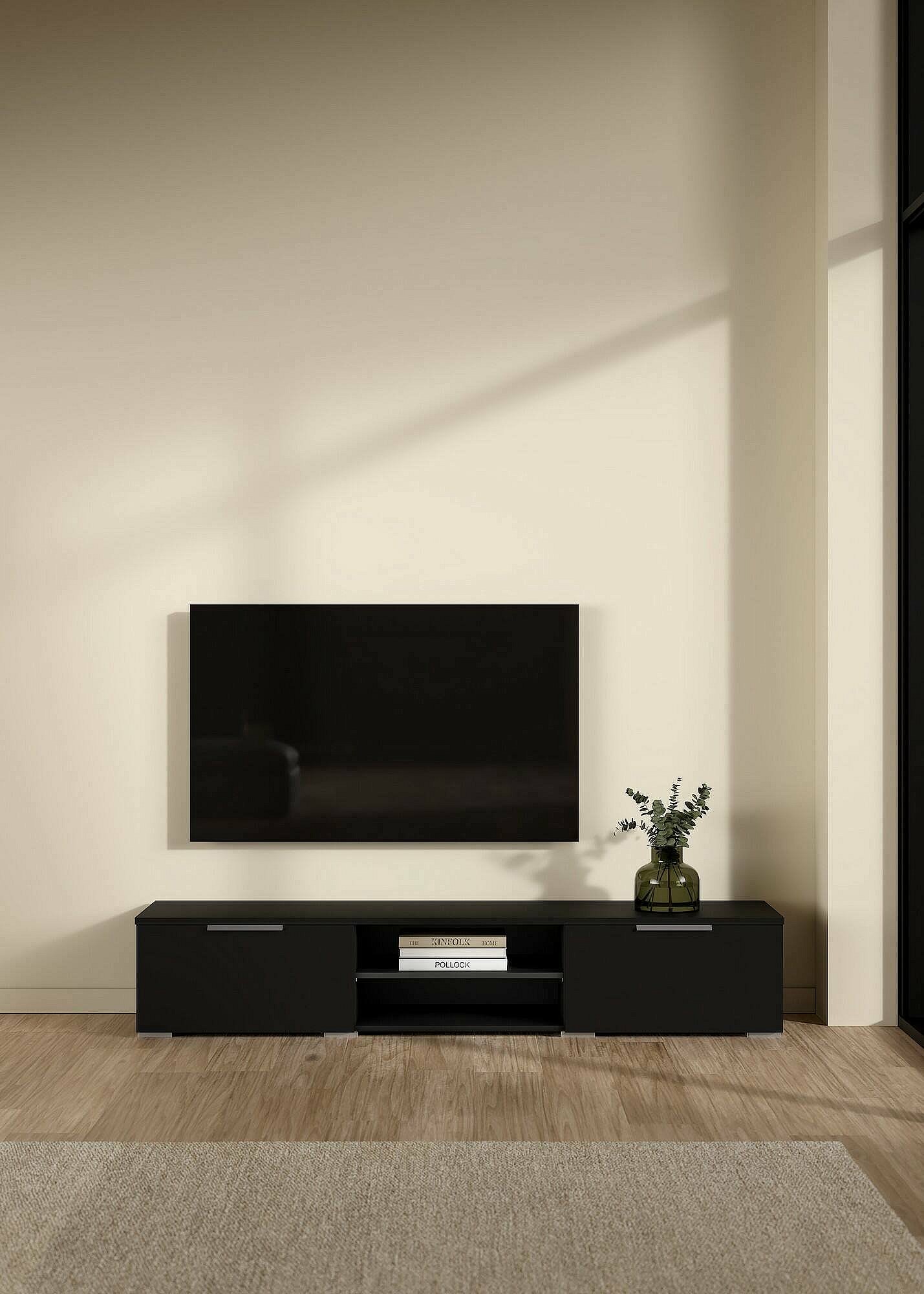 Meuble TV Dtheat, Buffet de salon, Armoire basse pour TV, Base murale de rangement, 173x40 h33 cm, Noir