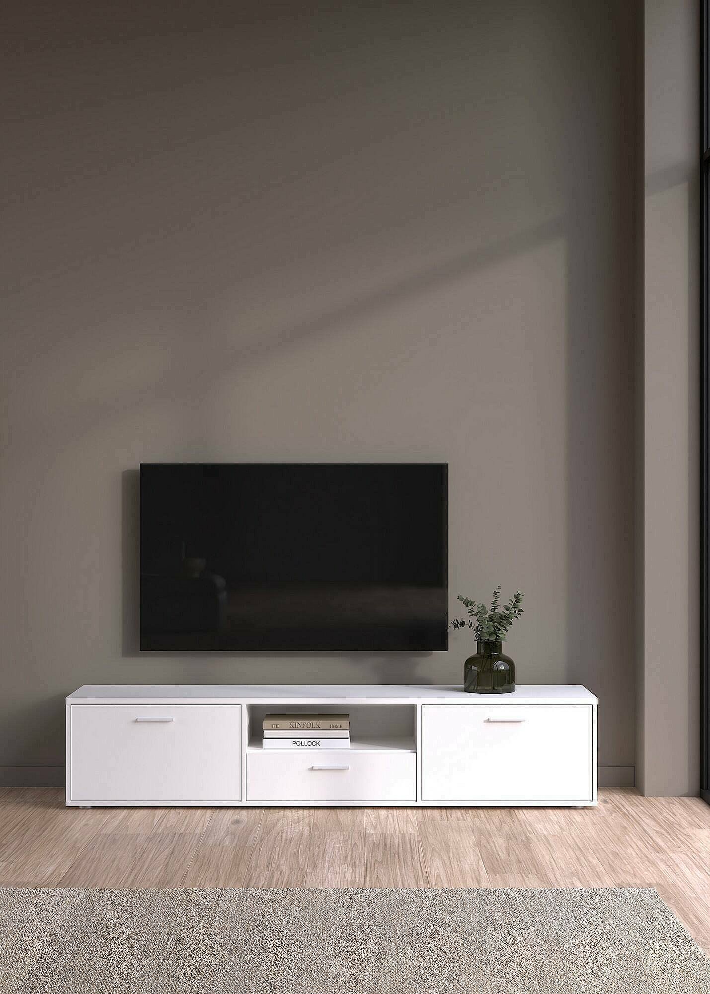 Meuble TV Dtinagli, Buffet de salon, Armoire basse pour TV, Base murale de rangement, 177x40 h38 cm, Blanc