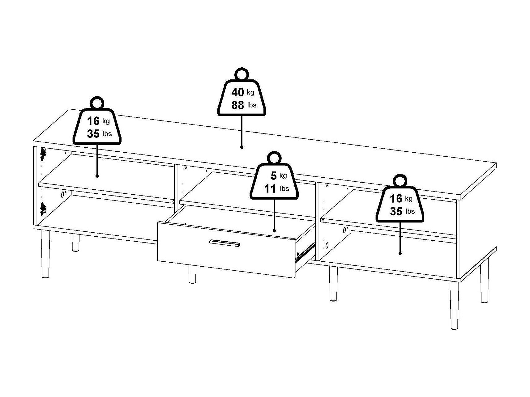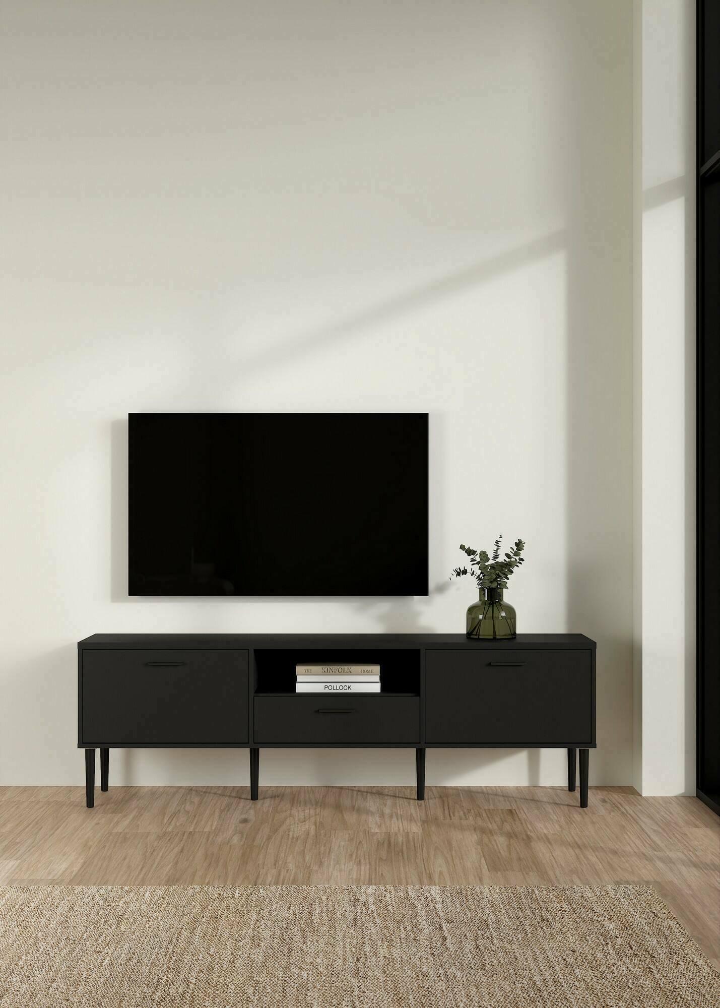 Meuble TV Dtisc, Buffet de salon, Armoire basse pour TV, Base murale de rangement, 177x40 h57 cm, Noir