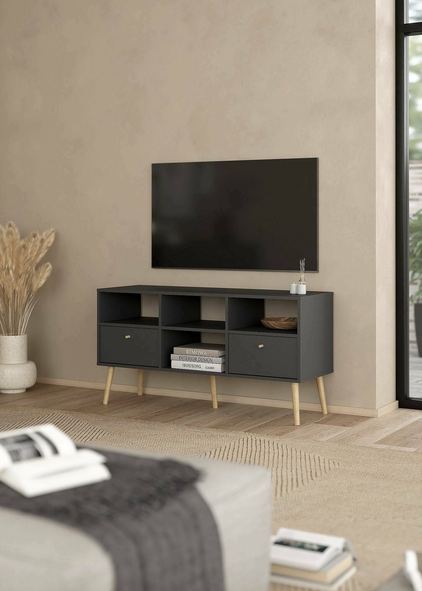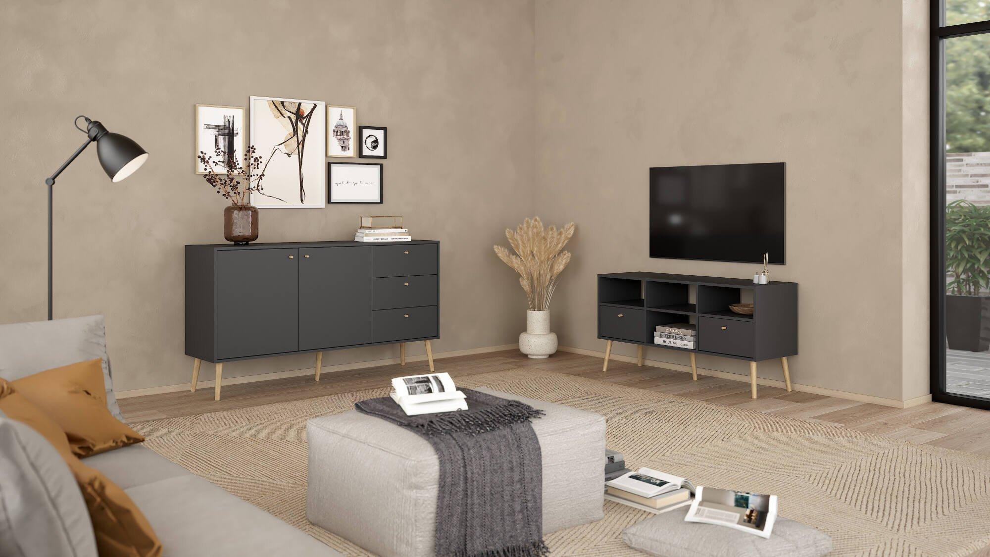 Meuble TV Dtoedtl, Buffet de salon, Armoire basse pour TV, Base murale de rangement, 117x39 h61 cm, Gris