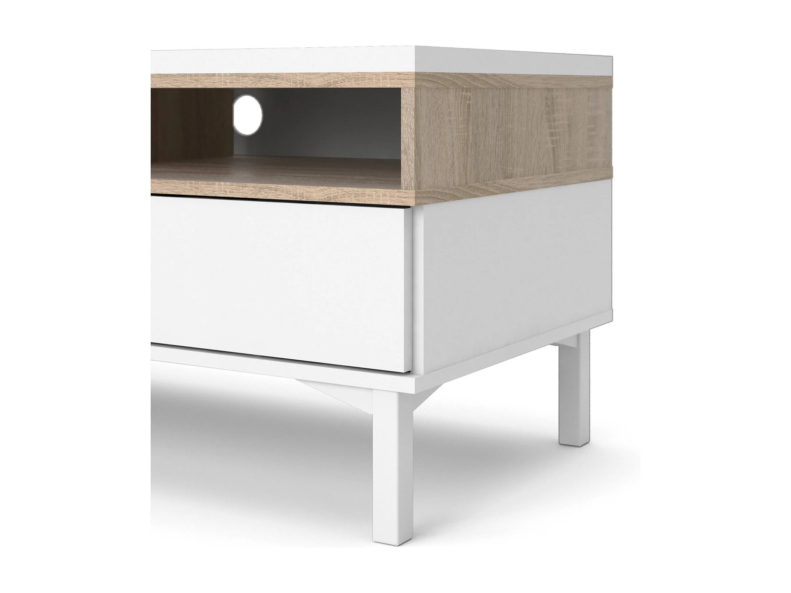 Meuble TV Dtoffani, Buffet de salon, Armoire basse pour TV, Base murale de rangement, 156x48 h48 cm, Blanc et chêne
