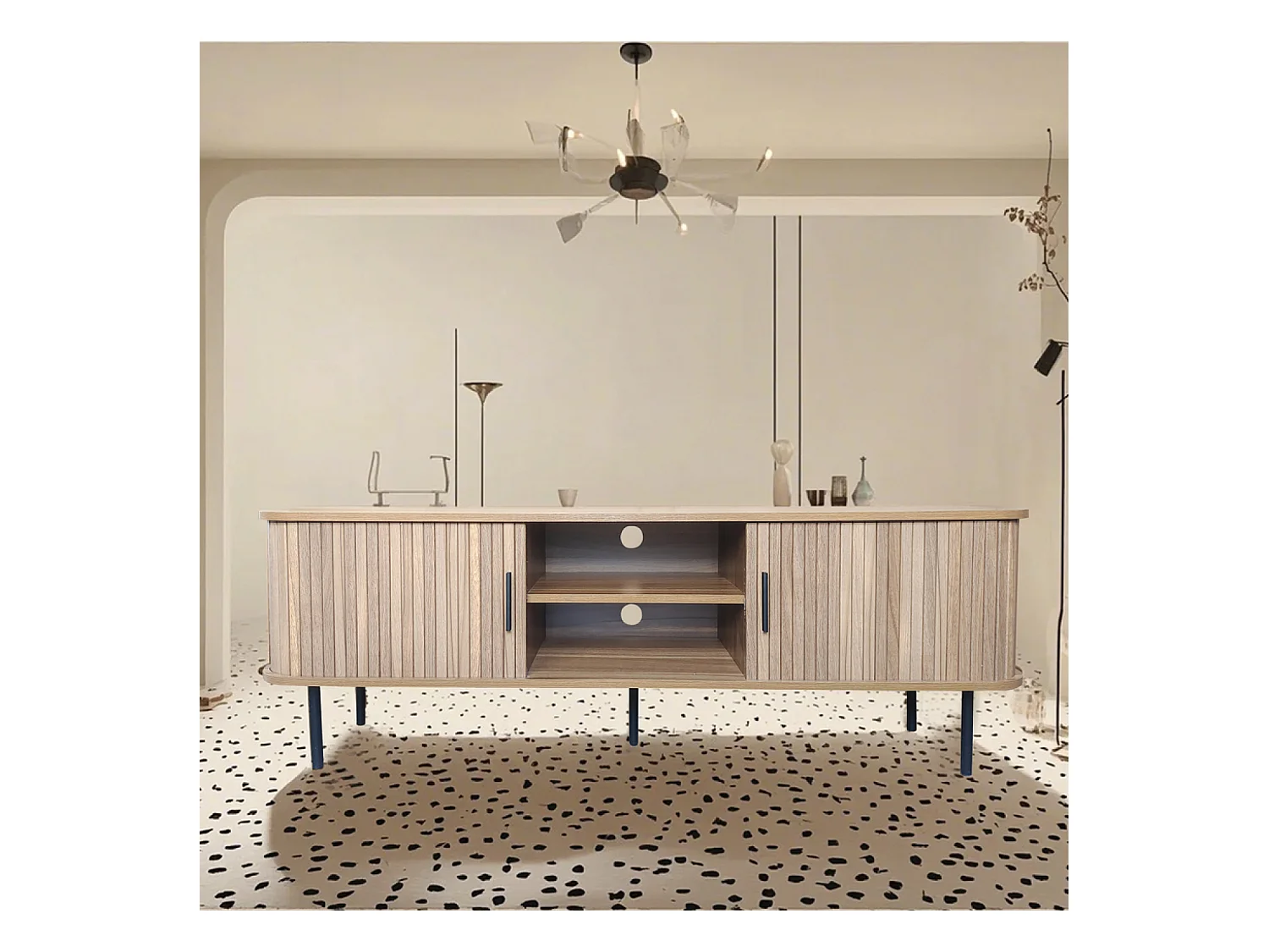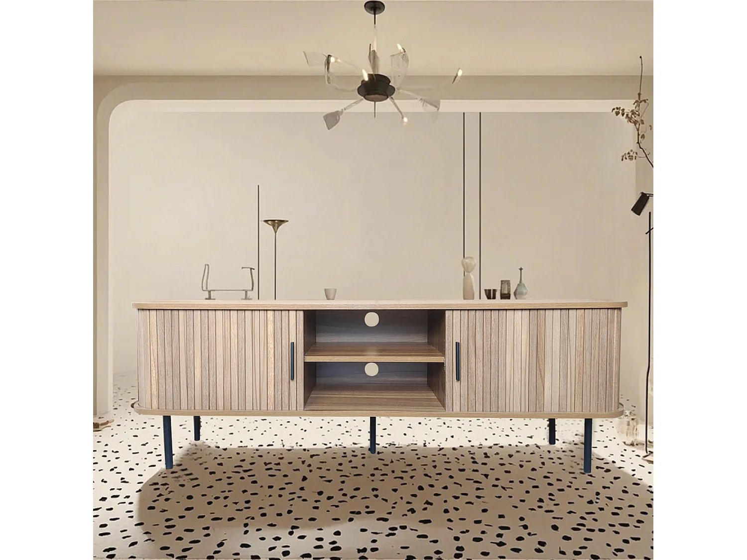 Meuble TV en bois cannelé à portes coulissantes 140cm MANADO