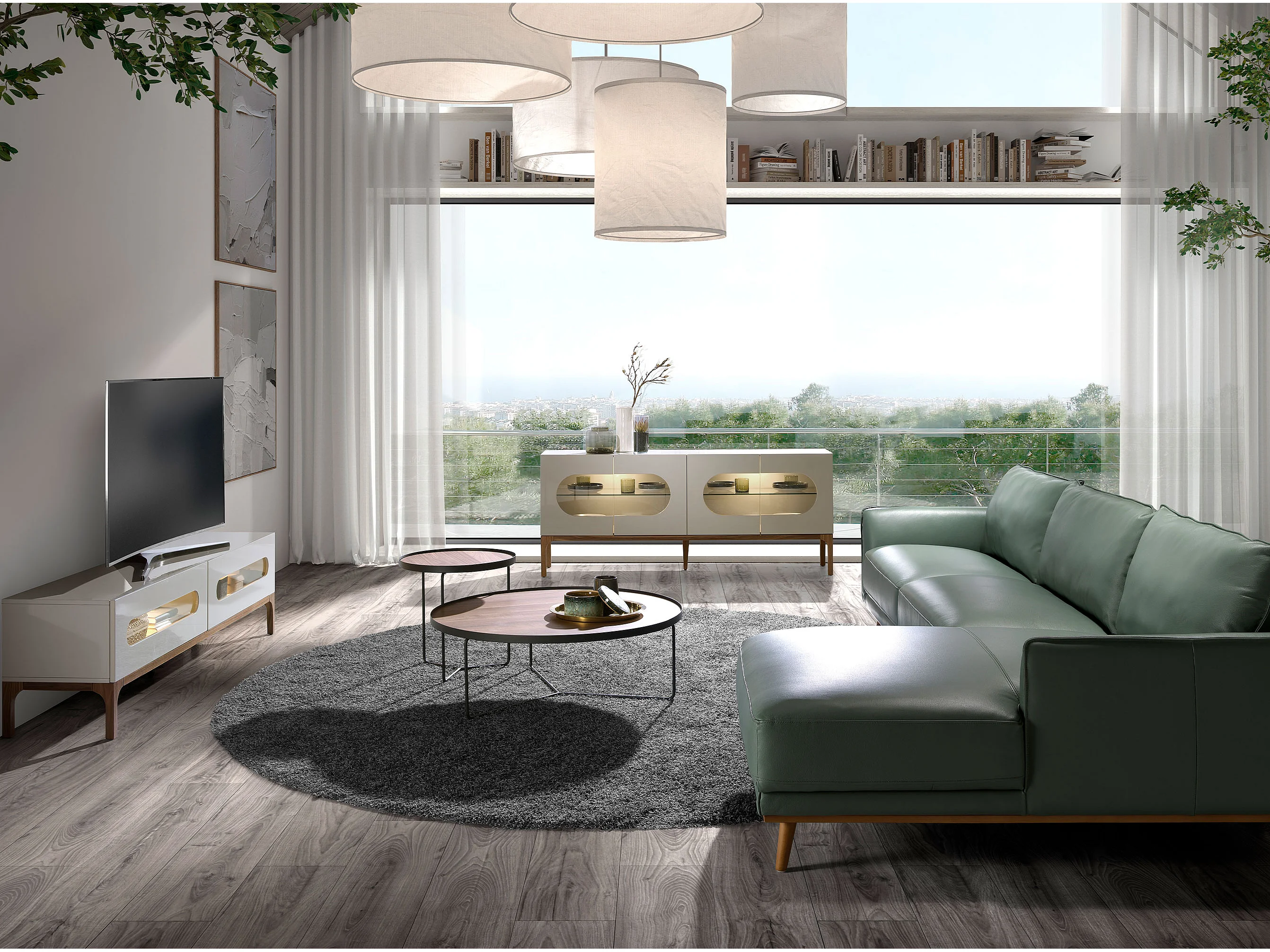 Meuble TV en bois gris et noyer avec éclairage intérieur 3242 ANGEL CERDA