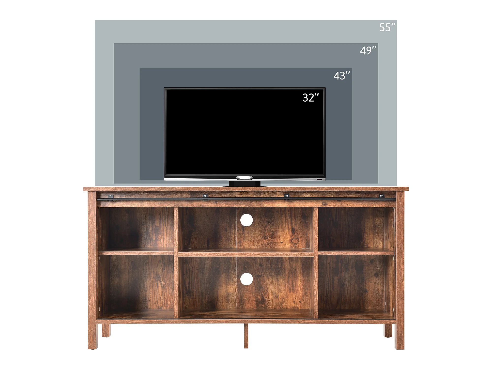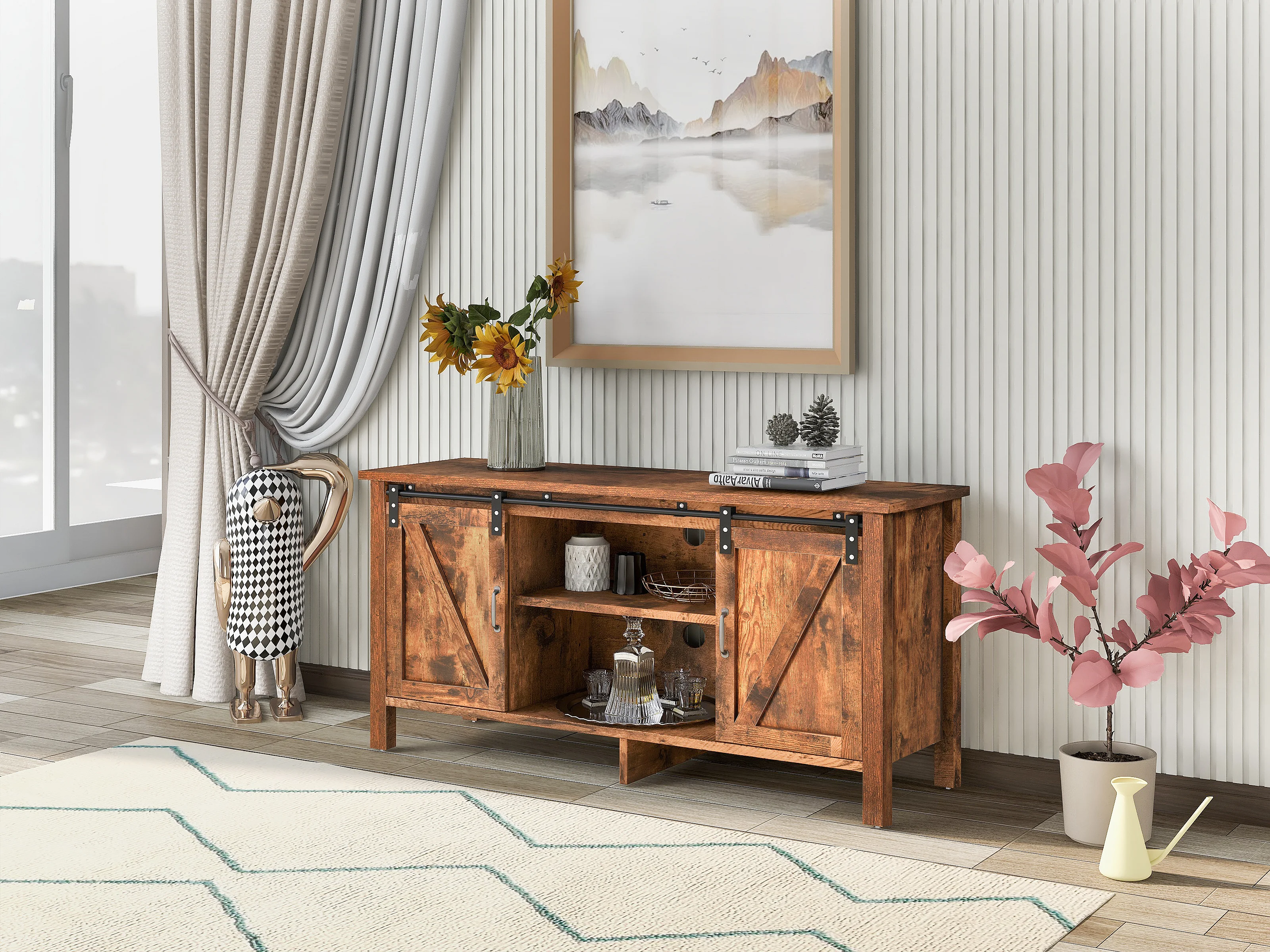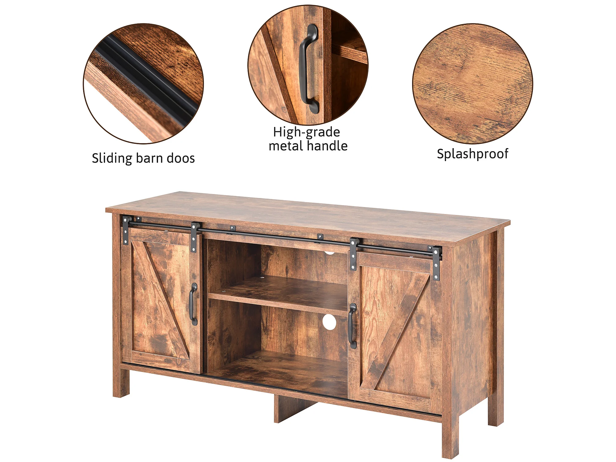 Meuble tv en design industriel vintage avec 2 portes coulissantes brun vintage