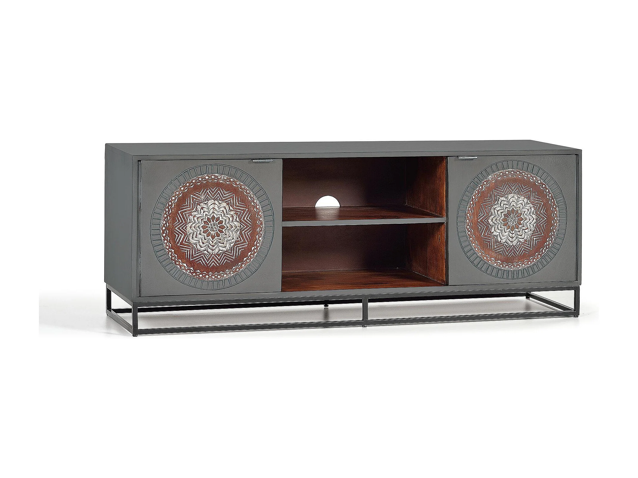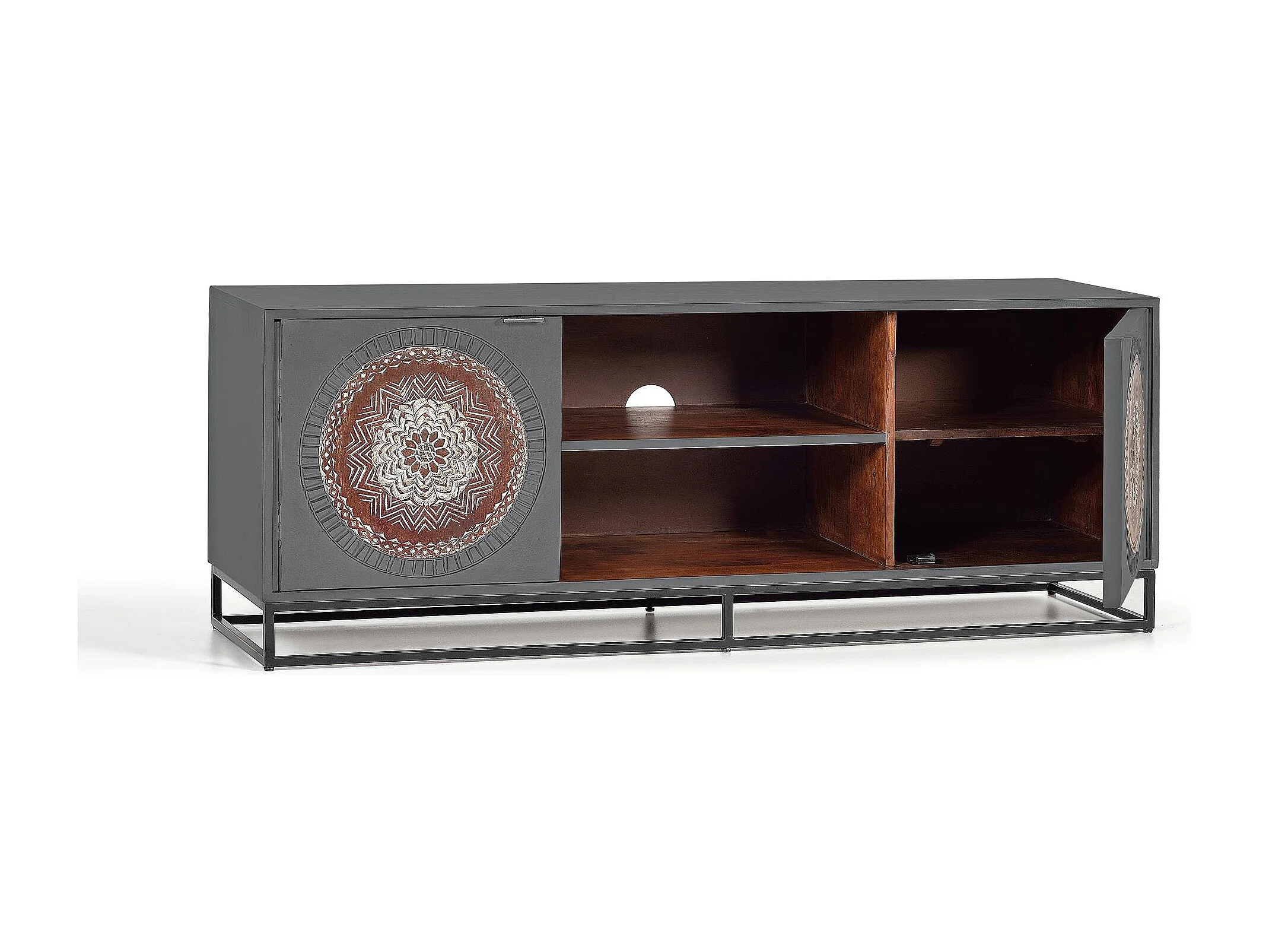 Meuble TV 2 portes et 2 niches blanc mat L183 cm - Touch