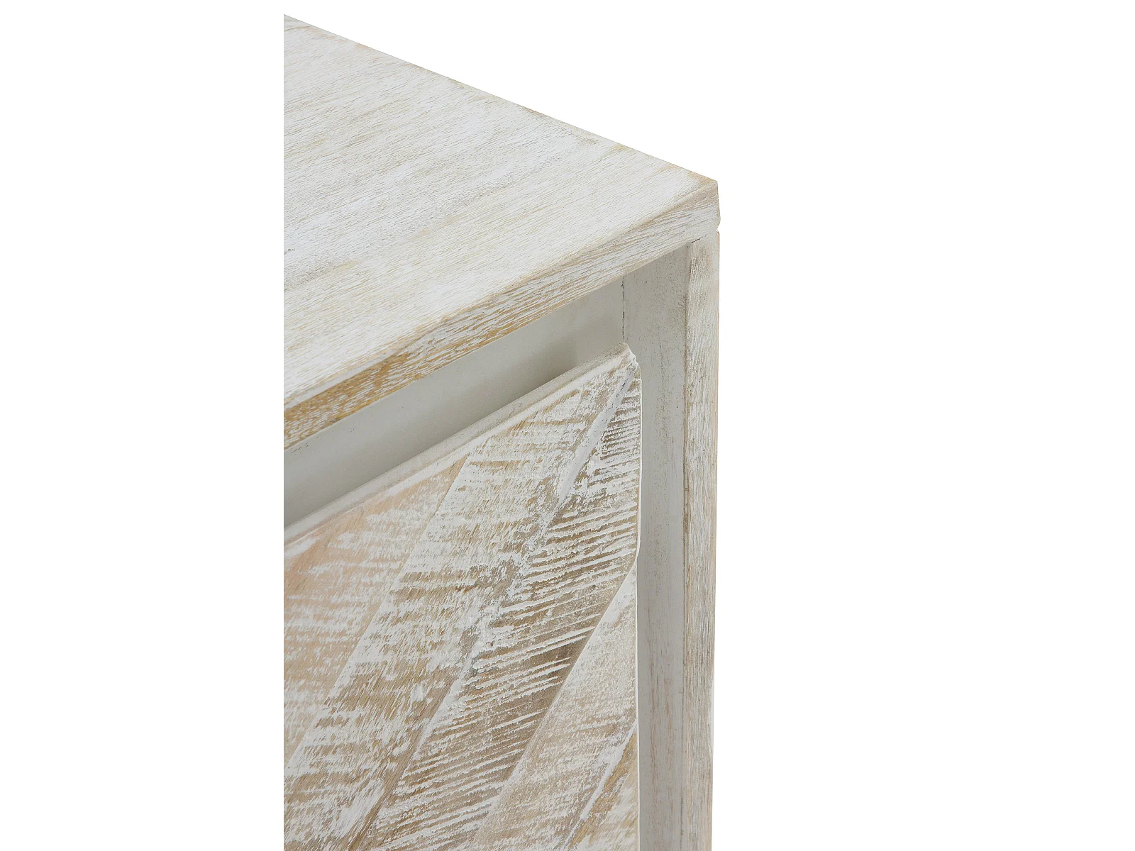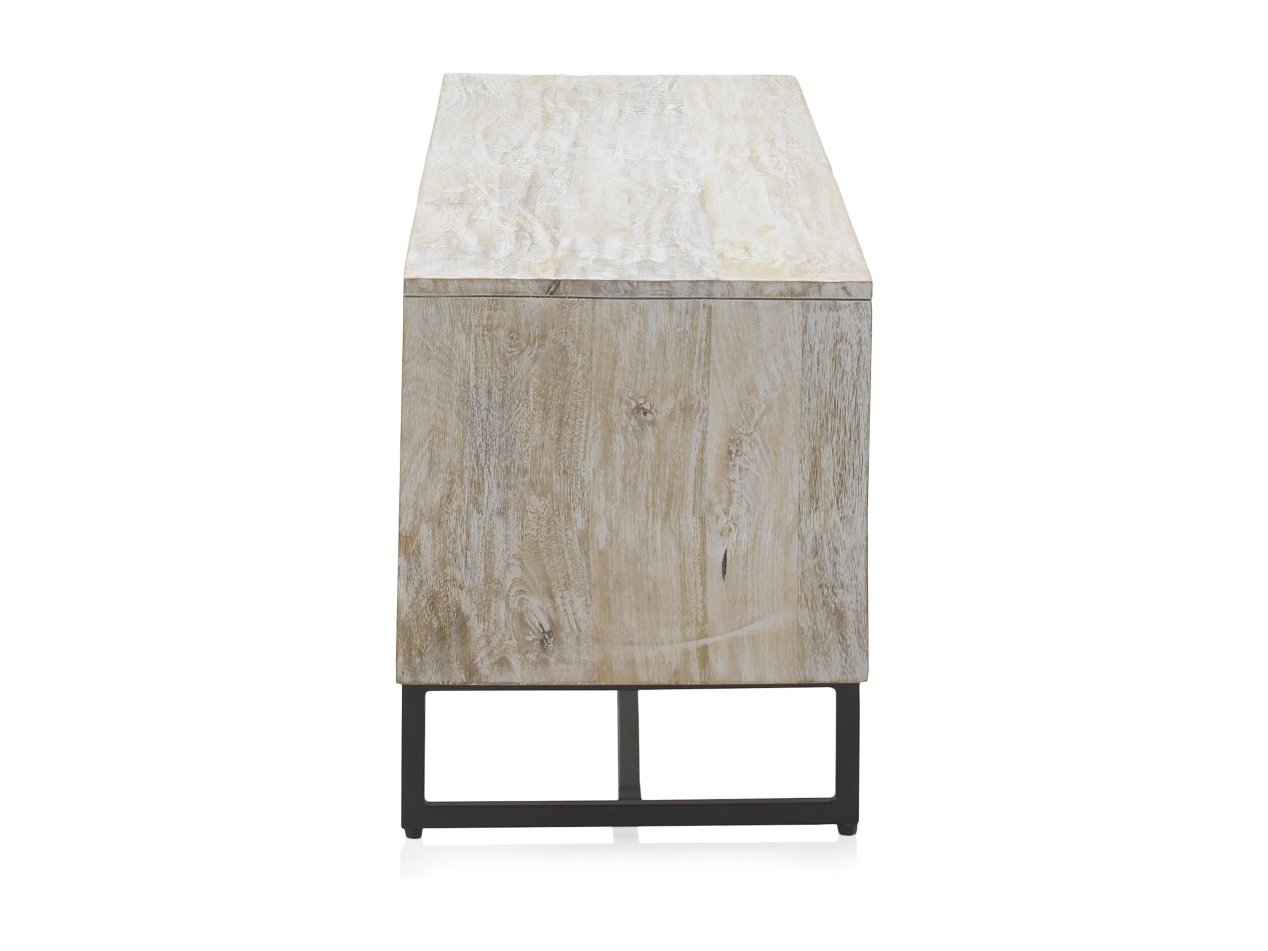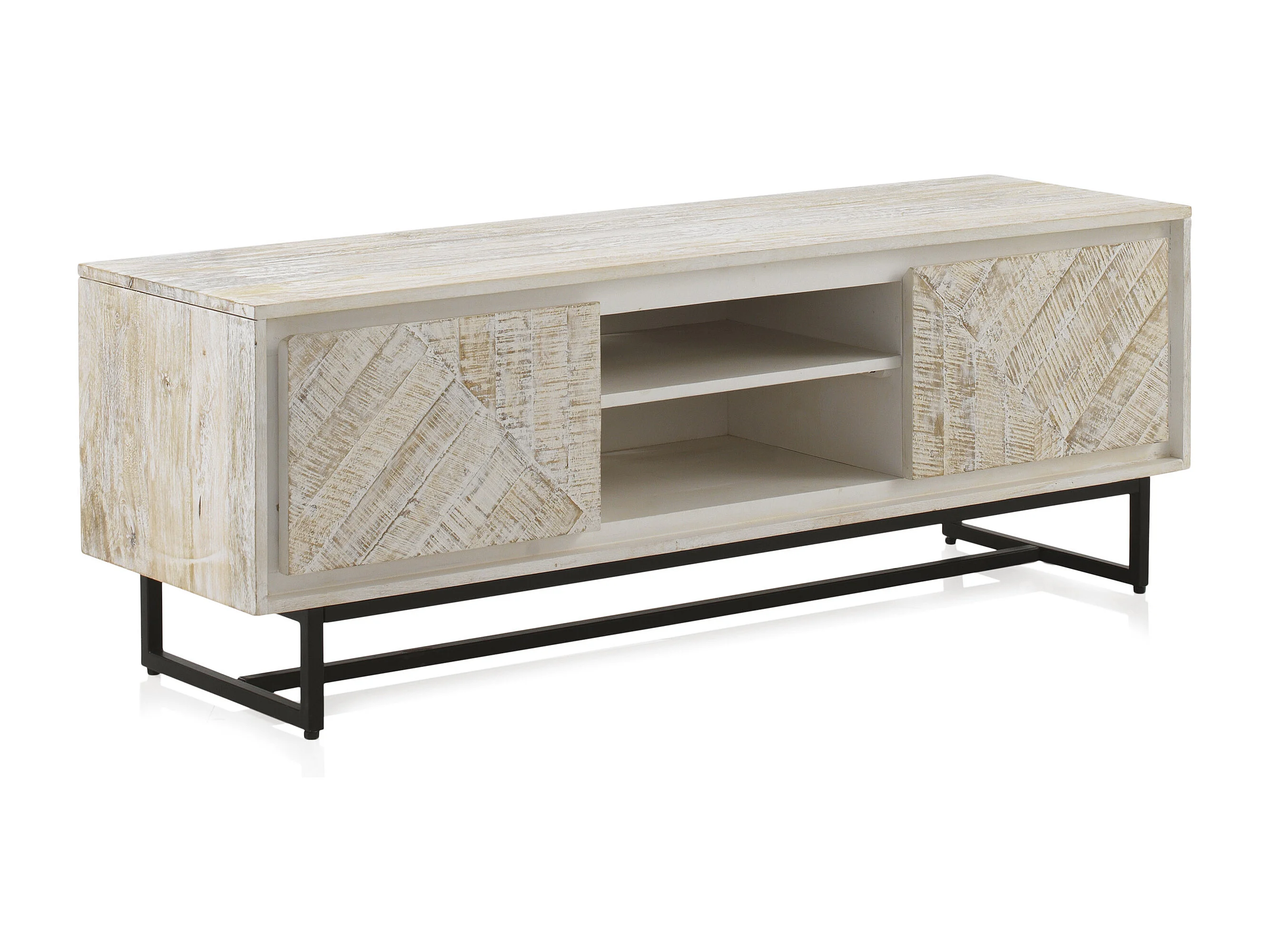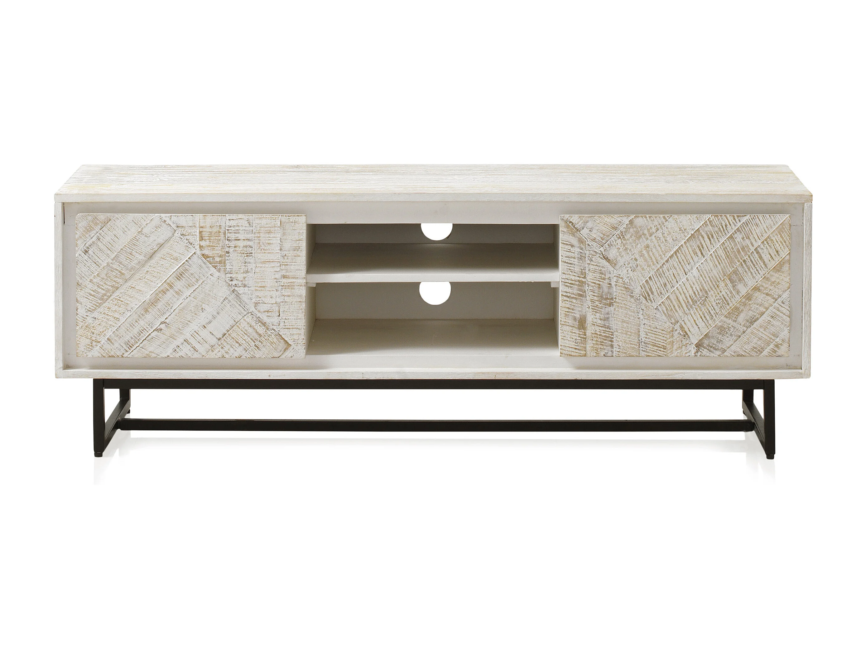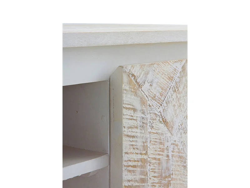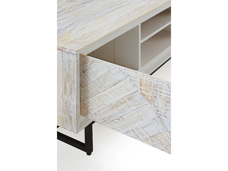 Meuble TV en bois massif de manguier blanc patiné