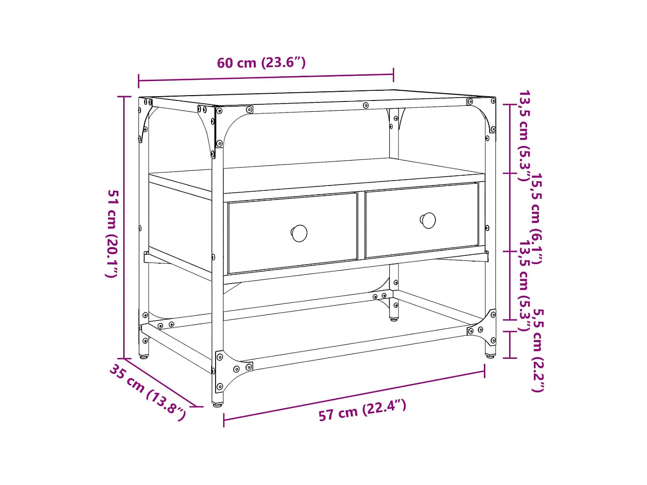 Meuble TV et dessus en verre noir 60x35x51 cm bois d'ingénierie