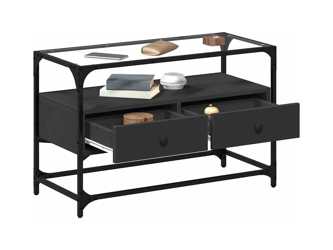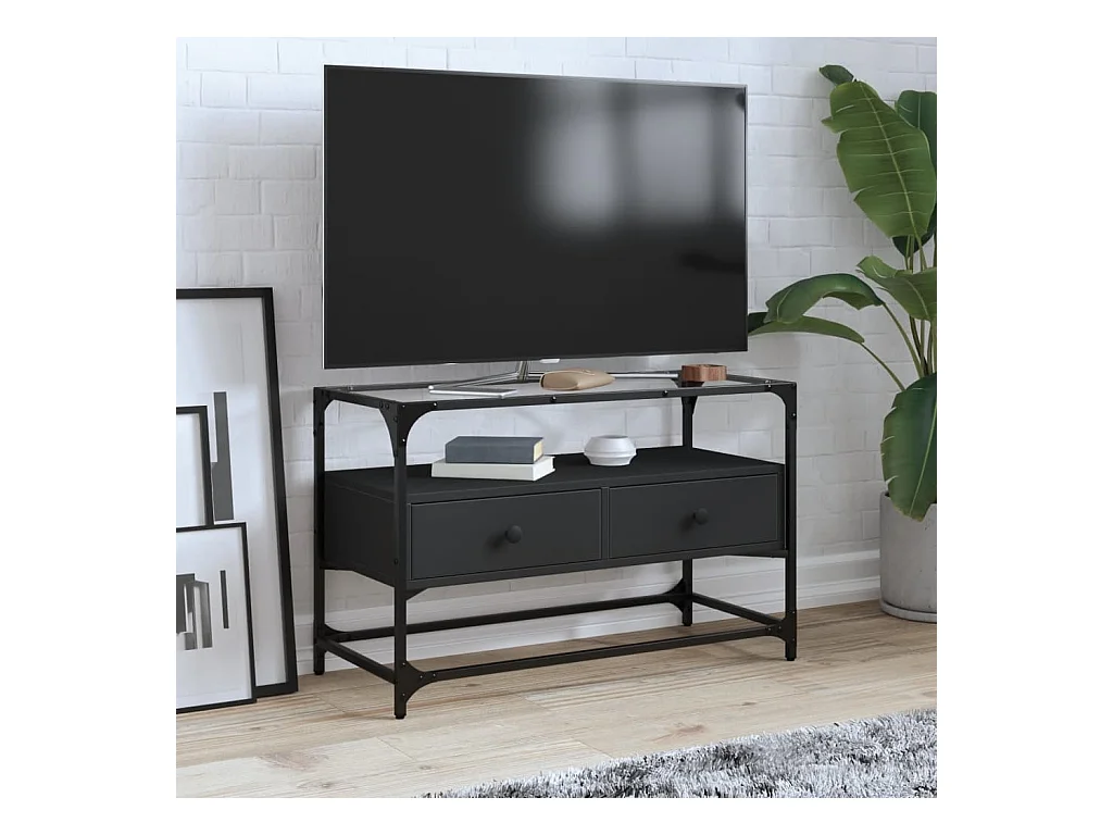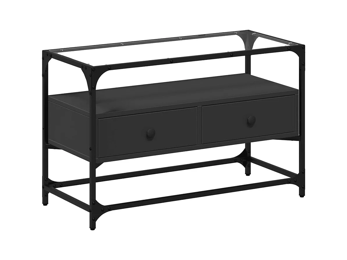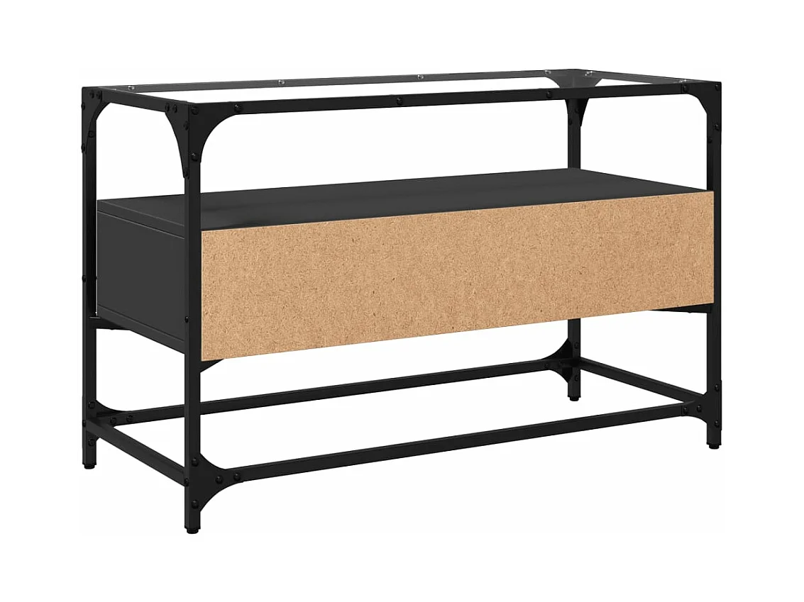 Meuble TV et dessus en verre noir 80x35x51 cm bois d'ingénierie