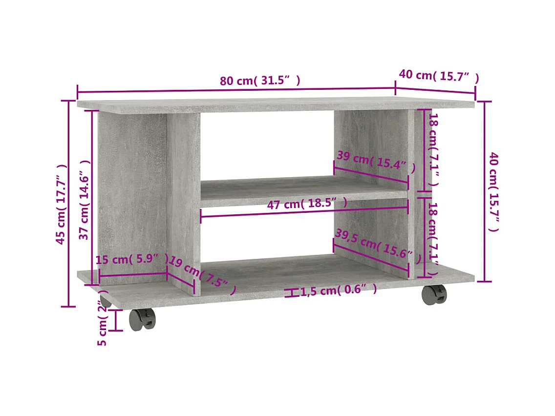 Meuble TV et roulettes gris béton 80x40x45 cm bois d'ingénierie FR44324