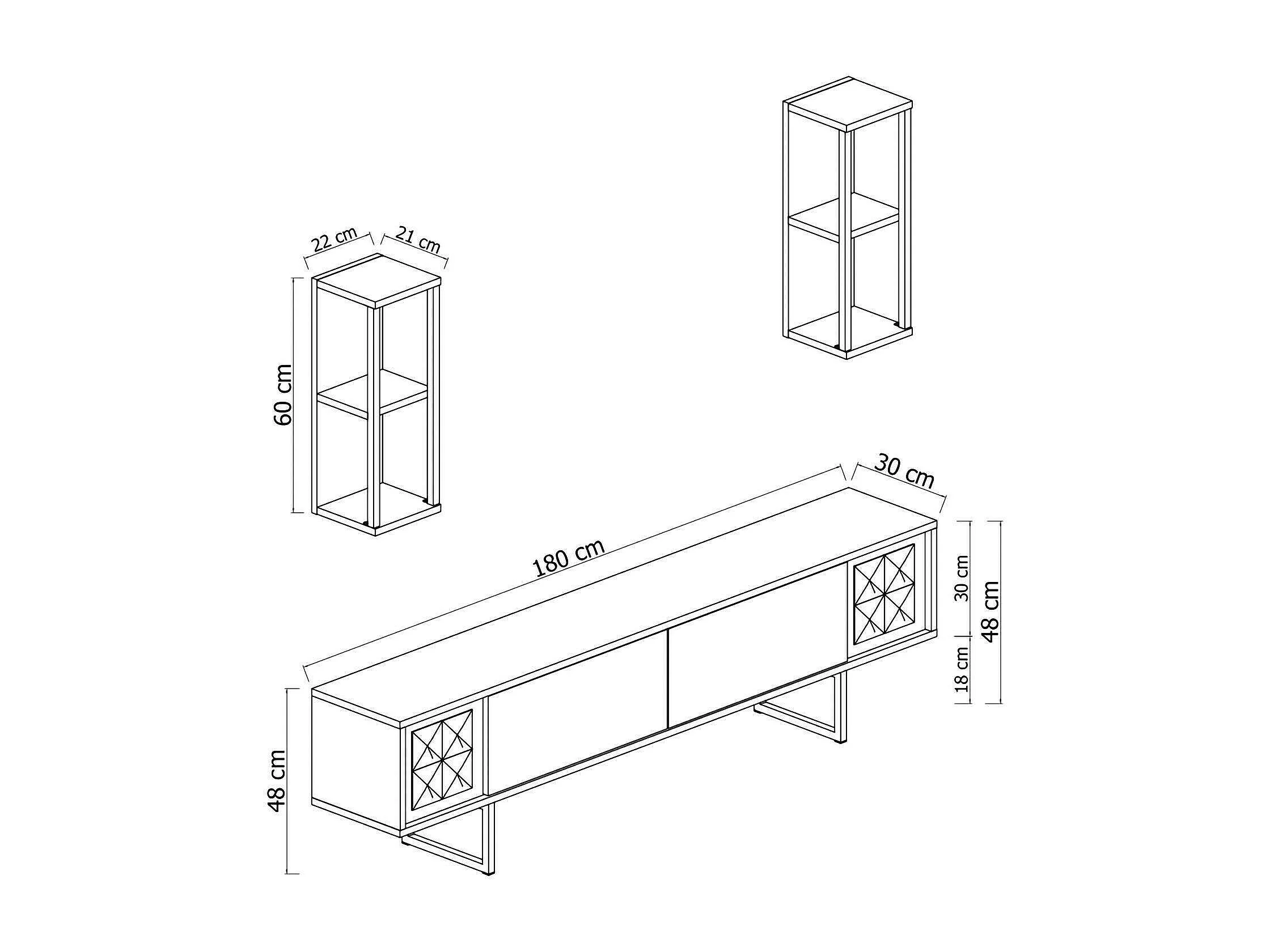 Meuble TV Eunomia, Buffet de salon, Armoire basse pour TV, Base murale de rangement, 180x30h48 cm, Anthracite et Noir