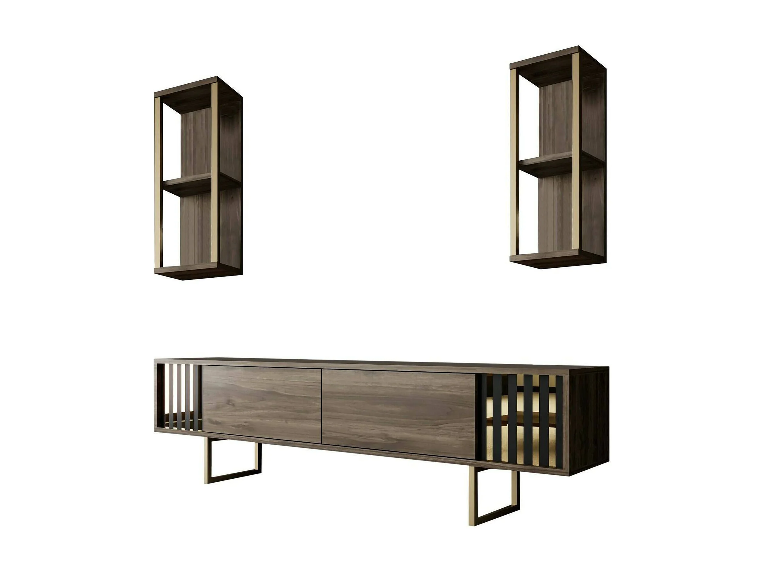 Meuble TV Eunomia, Buffet de salon, Armoire basse pour TV, Base murale de rangement, 180x30h48 cm, Noyer et Noir