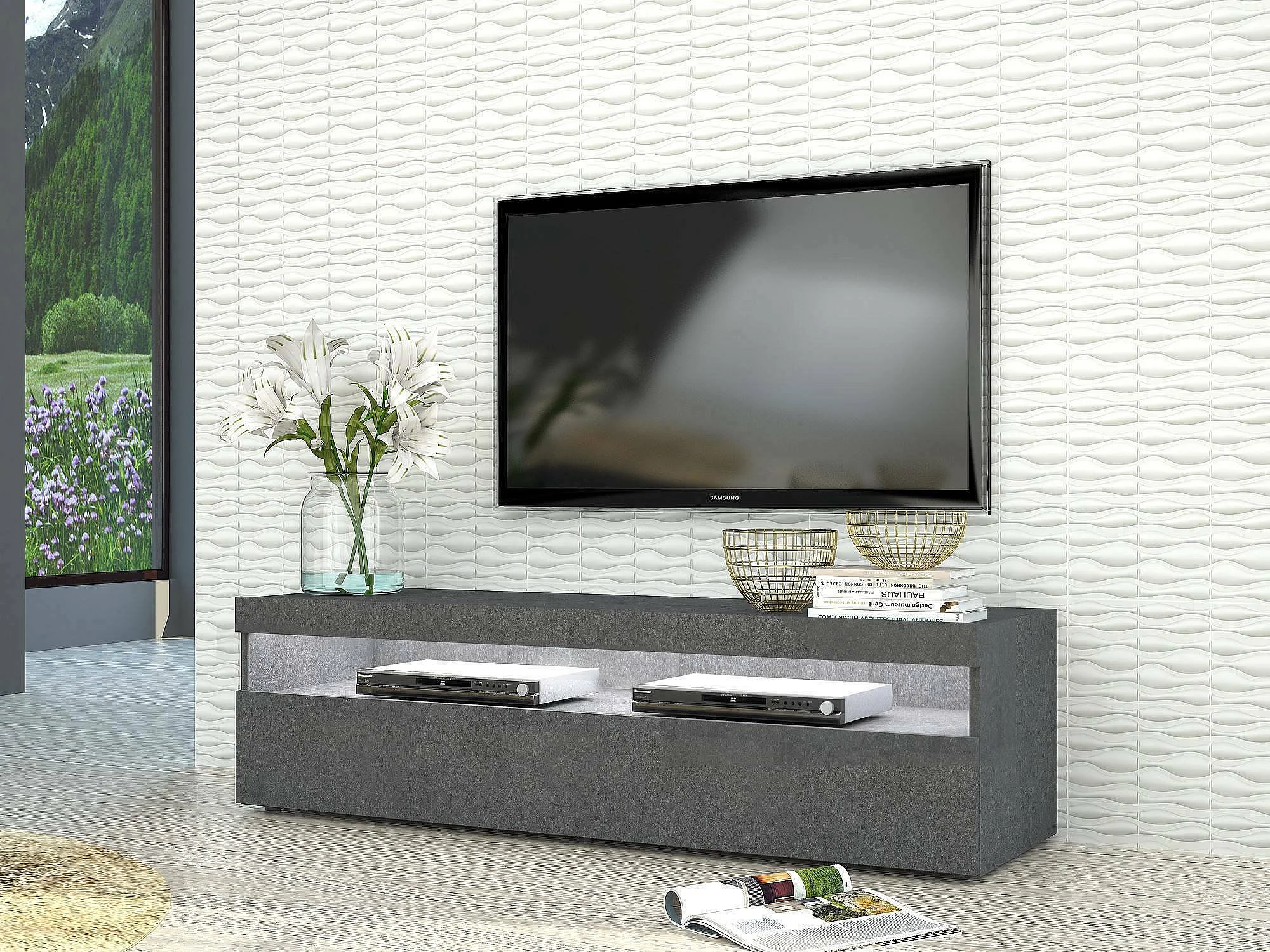 Meuble TV Gioele, Buffet bas de salon avec 1 porte, Base pour meuble TV, 100% Made in Italy, 130x45h36 cm, Ardoise