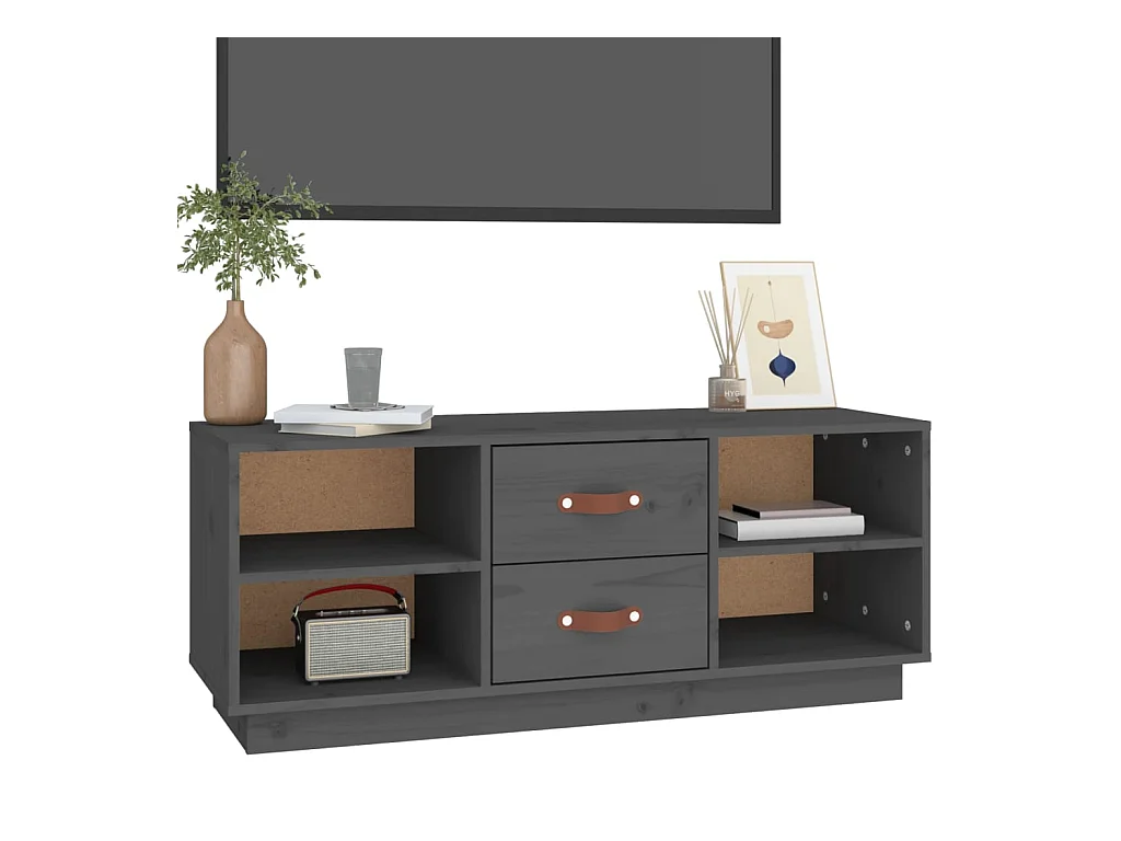 Meuble TV Gris 100x34x40 cm Bois de pin massif BE94549
