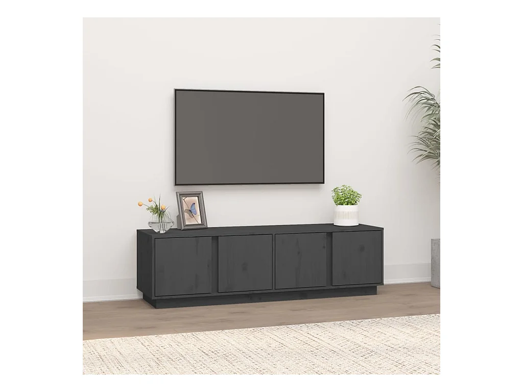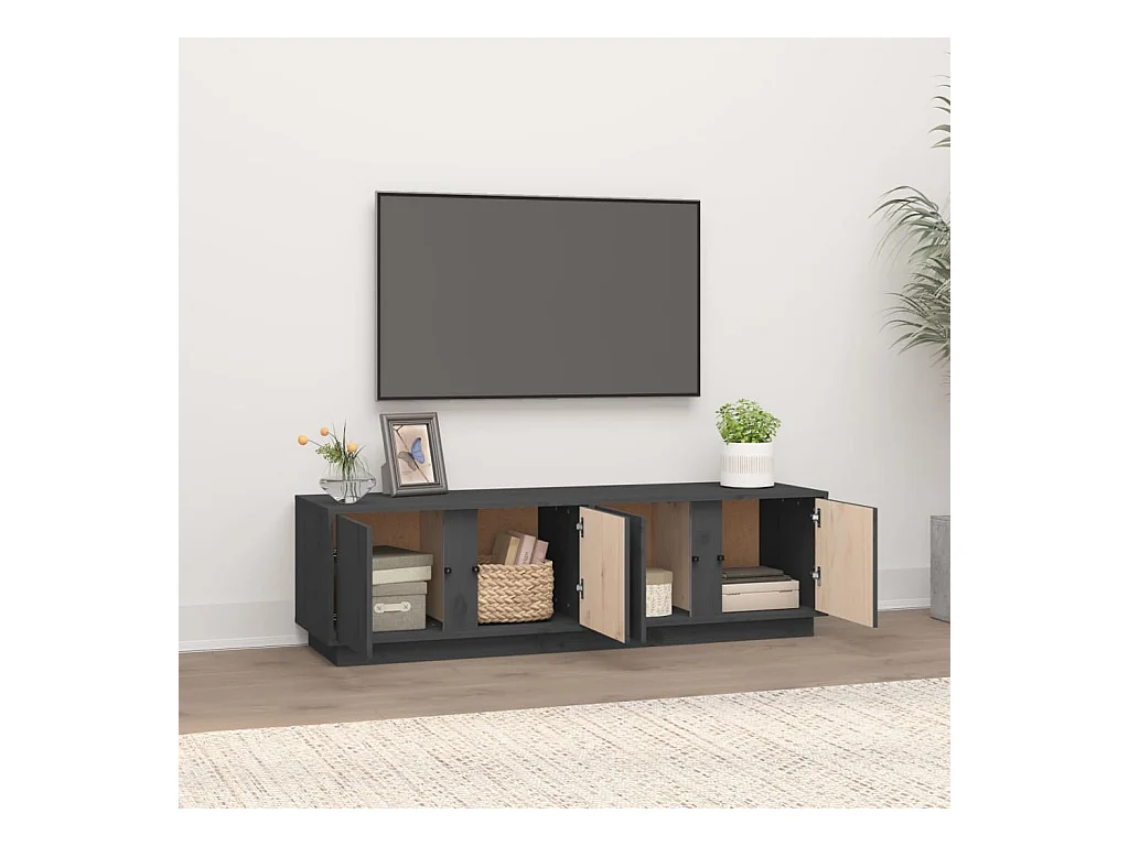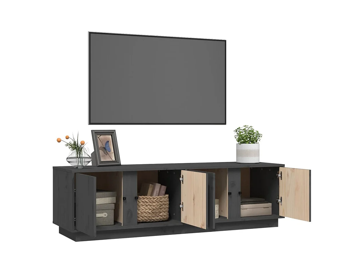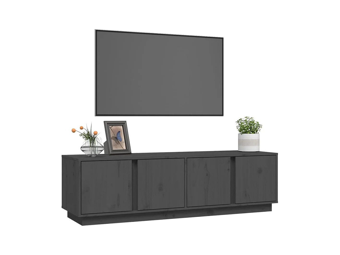 Meuble TV Gris 140x35x40 cm Bois de pin massif