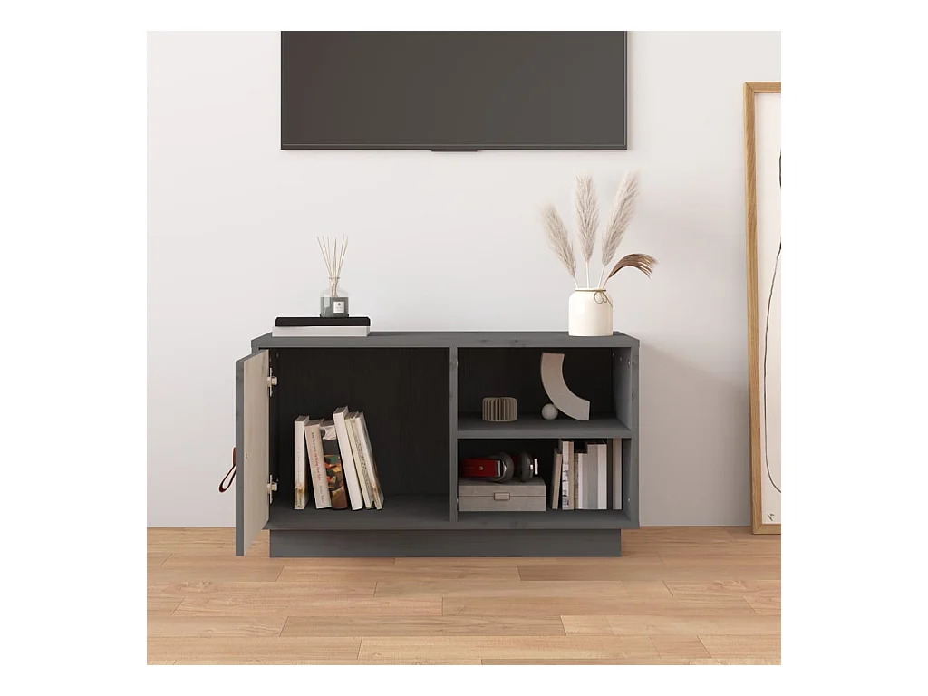 Meuble TV Gris 80x34x40 cm Bois de pin massif