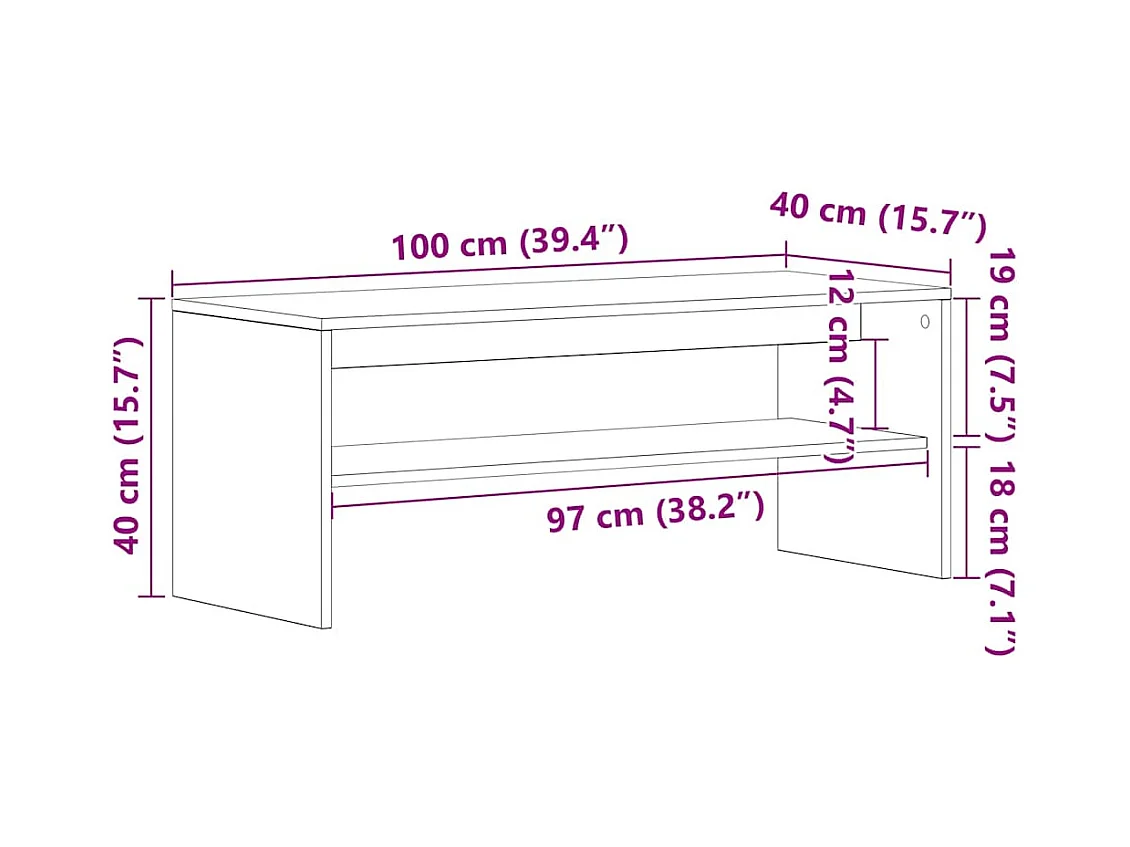 Meuble TV Chêne fumé 100x35x40 cm Bois d'ingénierie