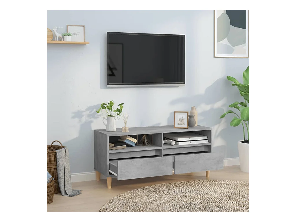Meuble TV gris béton 100x34,5x44,5 cm bois d'ingénierie