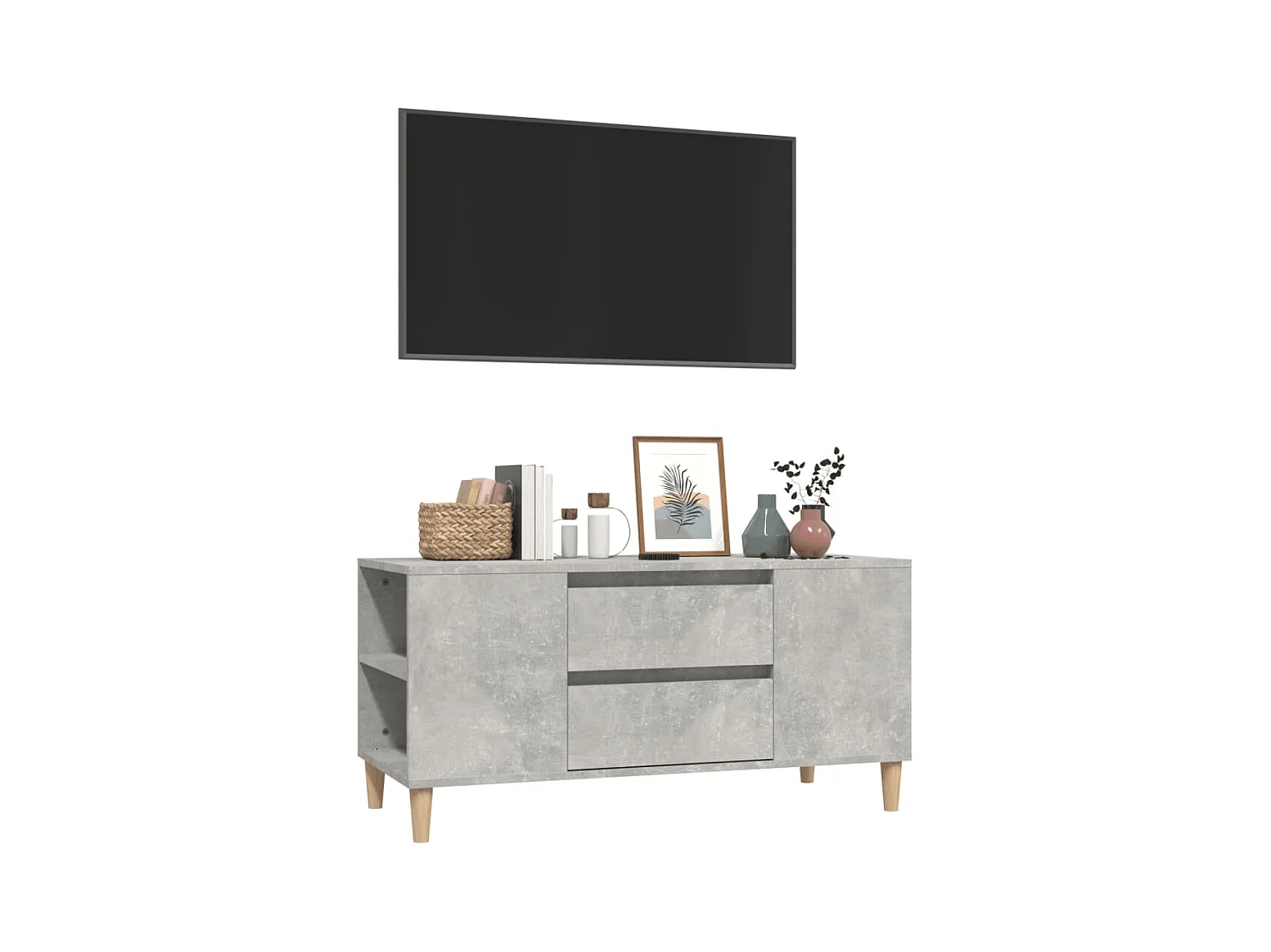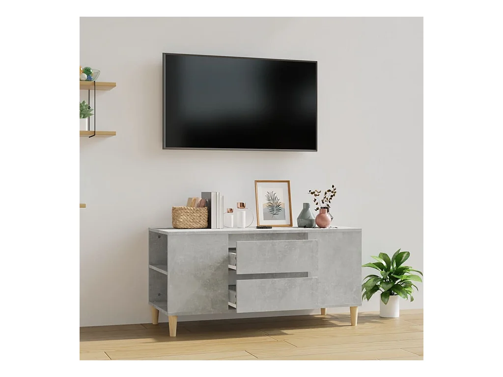 Meuble TV gris béton 102x36x50 cm bois d'ingénierie
