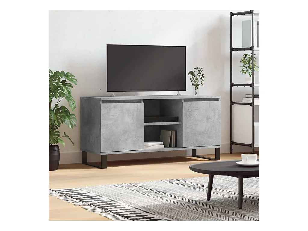 Meuble TV gris béton 104x35x50 cm bois d'ingénierie