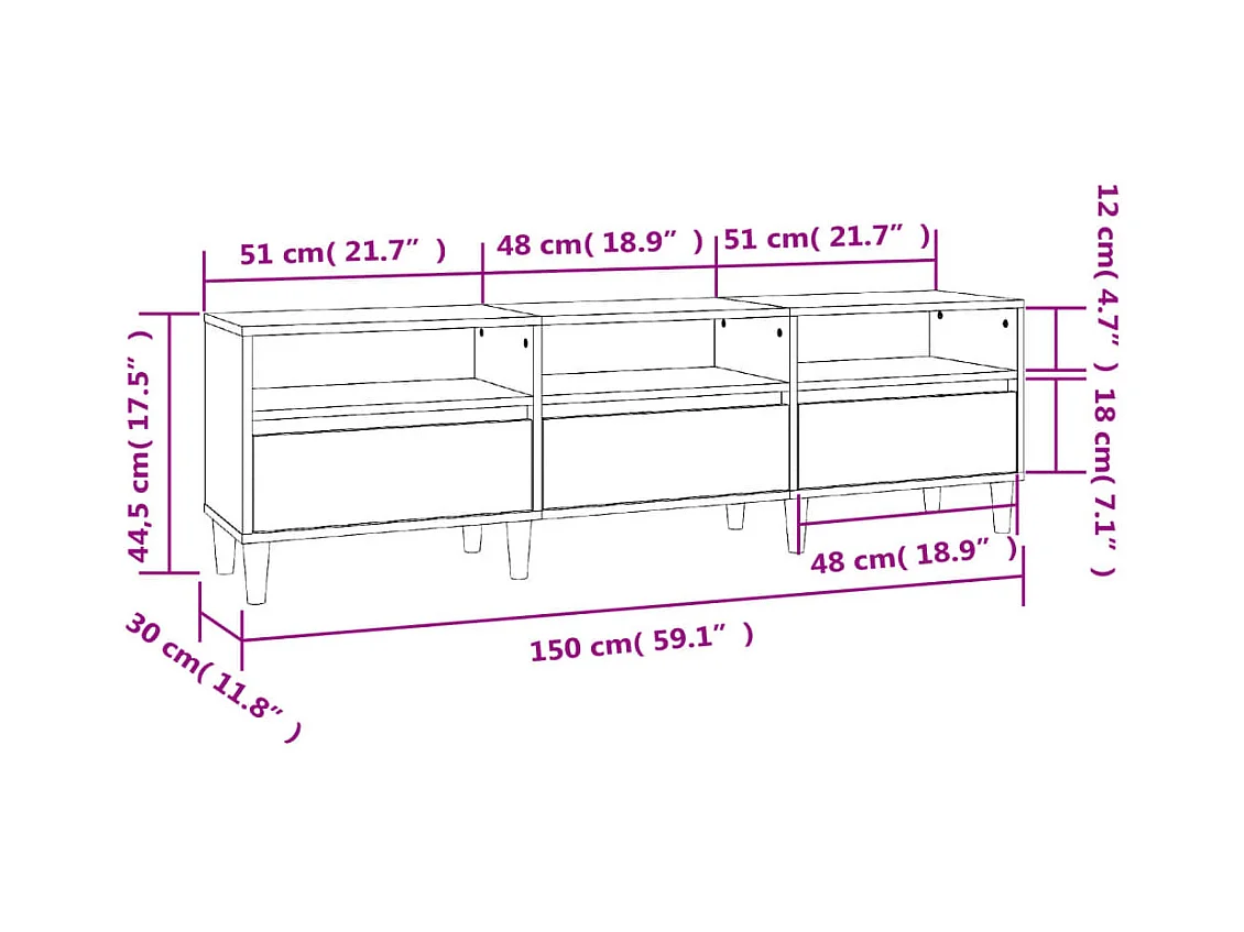 Meuble TV sonoma gris 150x30x44,5 cm bois d'ingénierie