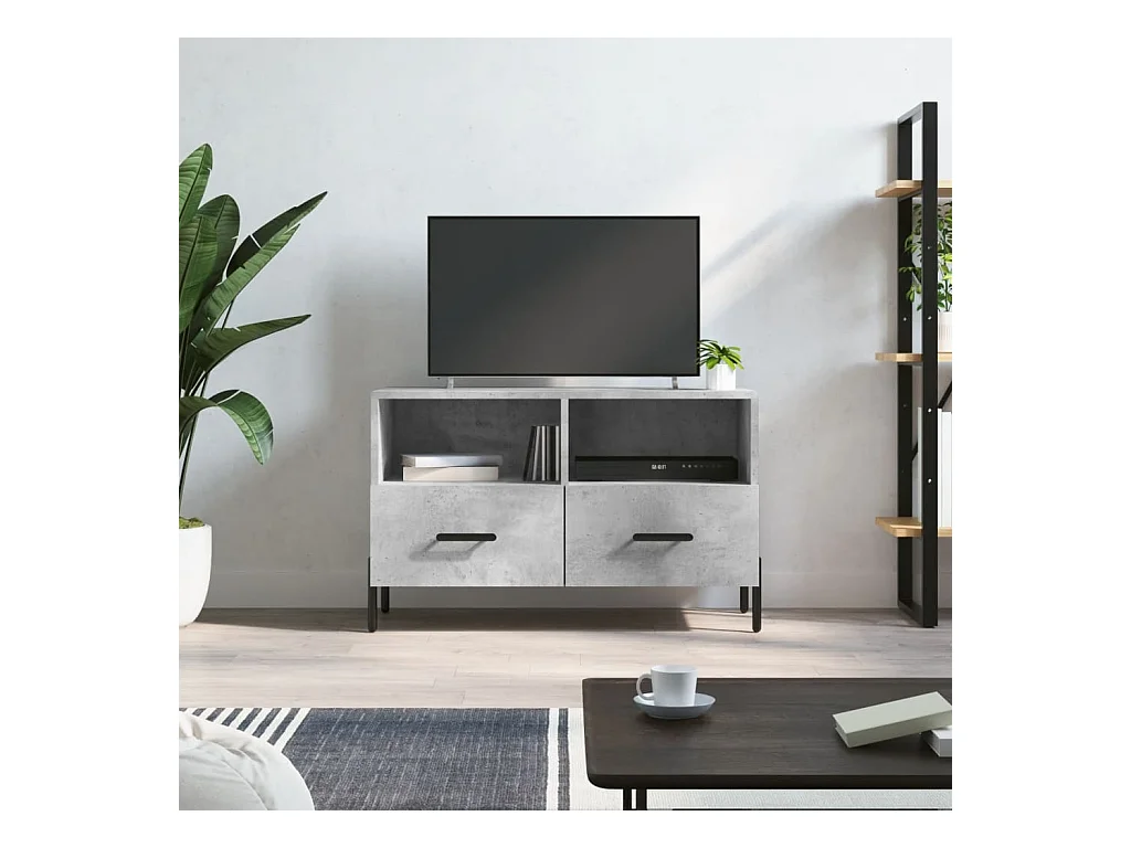 Meuble TV gris béton 102x36x50 cm bois d'ingénierie