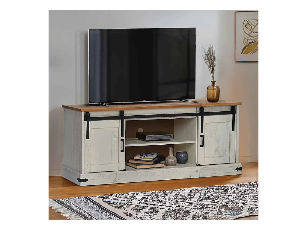 Meuble TV HALDEN 2 portes coulissantes blanc 150x40x60 cm