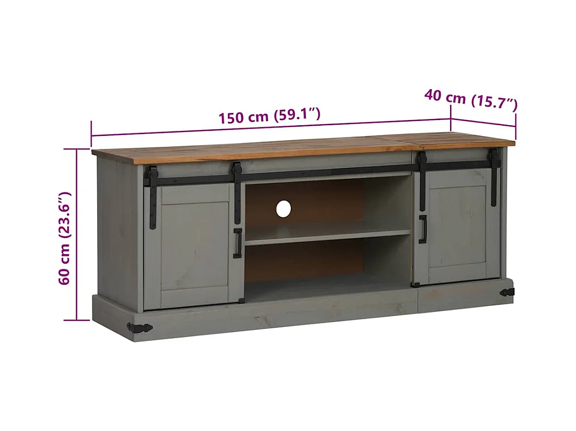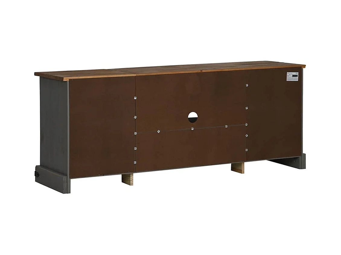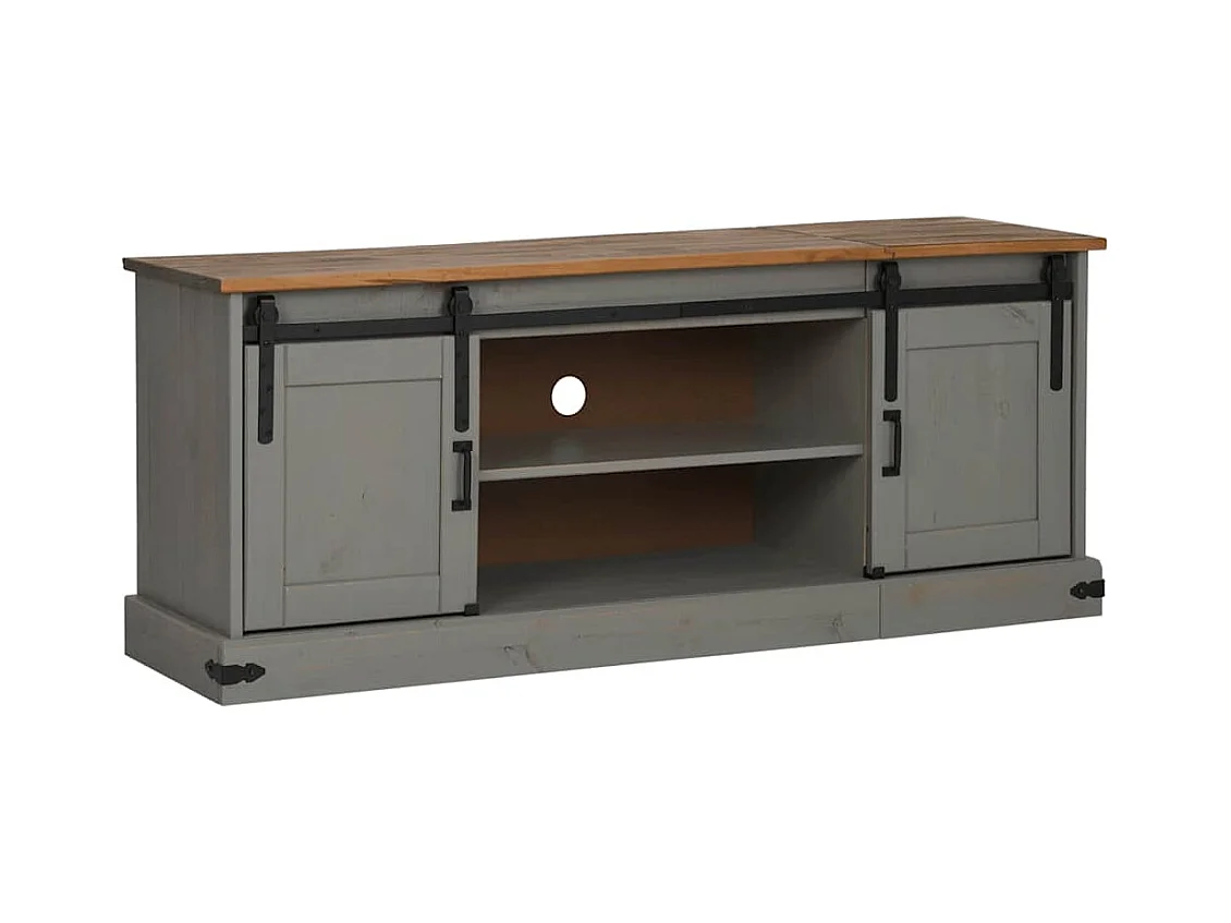 Meuble TV HALDEN porte coulissante gris 110x40x60cm bois massif