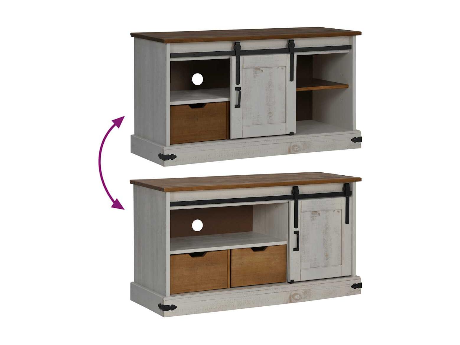 Meuble TV ODDA blanc 79x24x40 cm bois massif pin