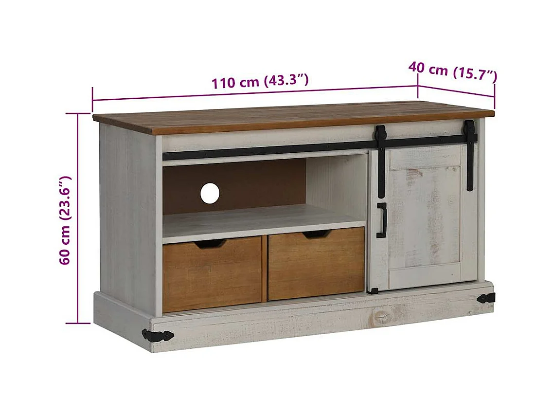 Meuble TV Drammen Blanc 99 x 43 x 55 cm Bois de pin massif
