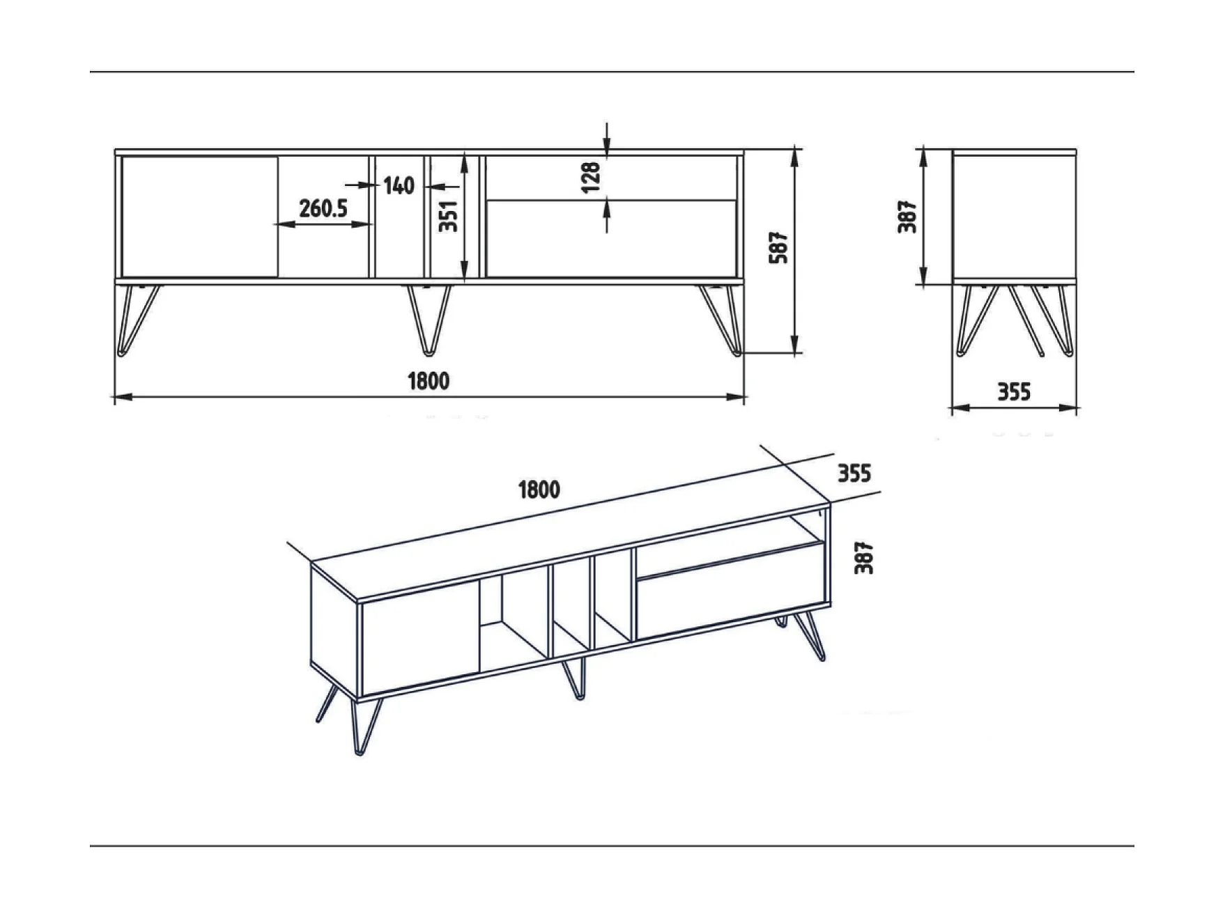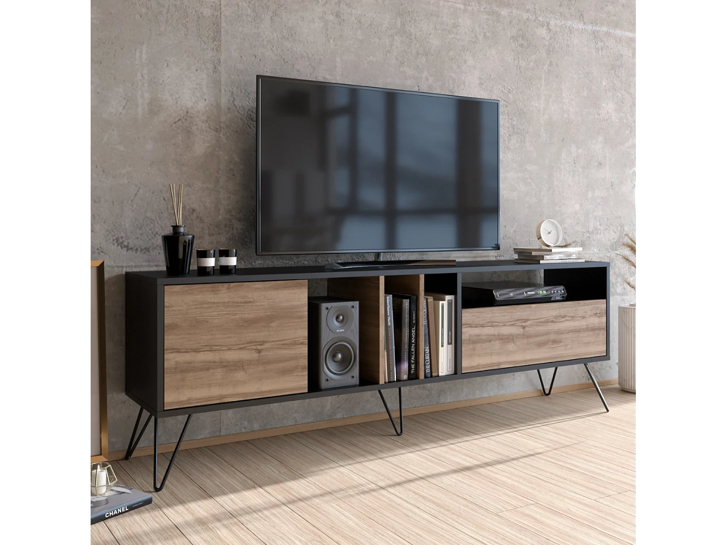 Meuble TV industriel bois et noir avec rangement 180 cm BAYLEE