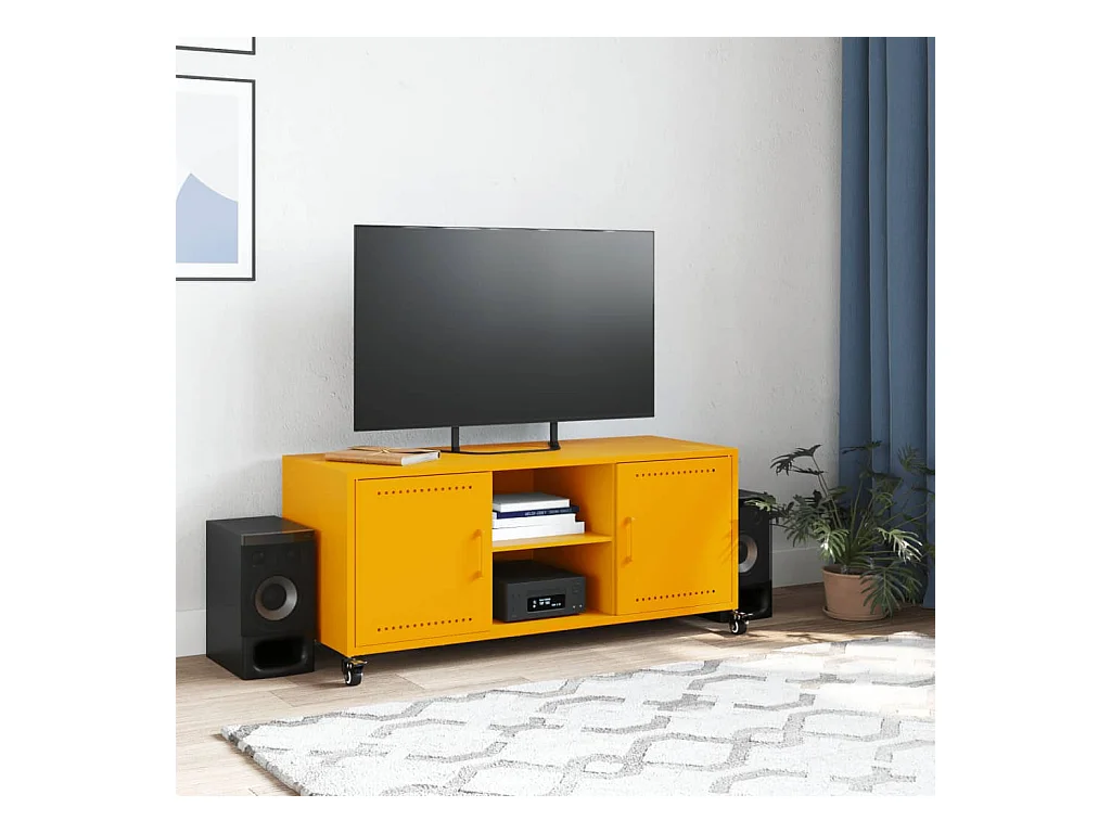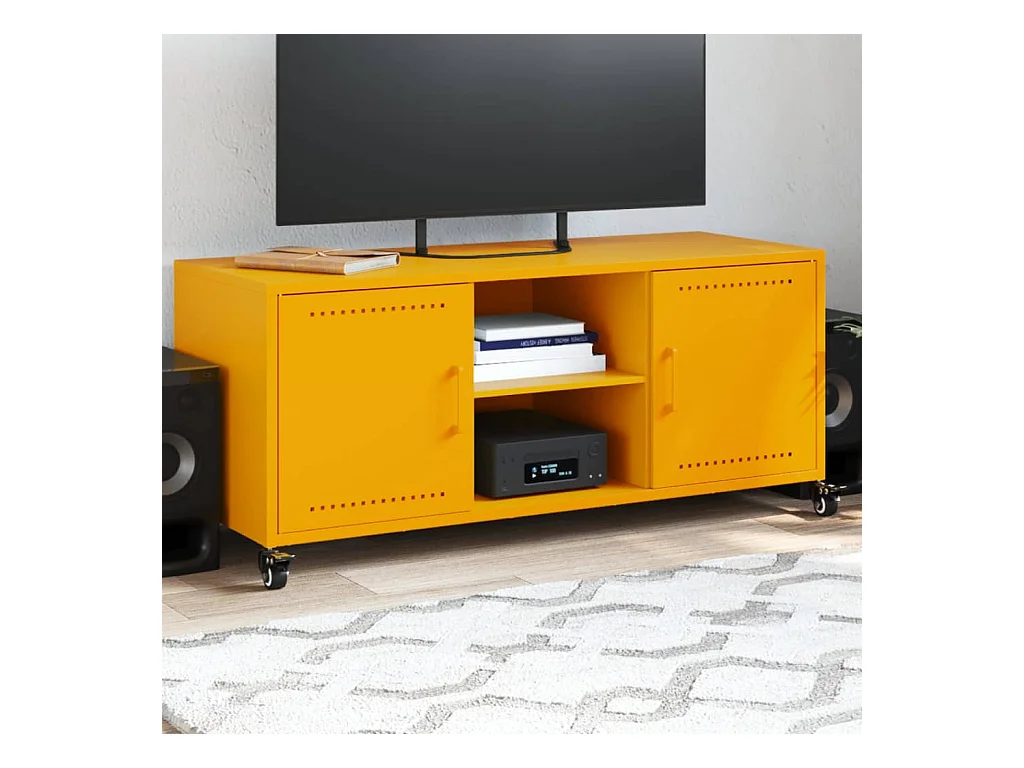 Meuble TV jaune moutarde 101,5x39x43,5 cm acier laminé à froid