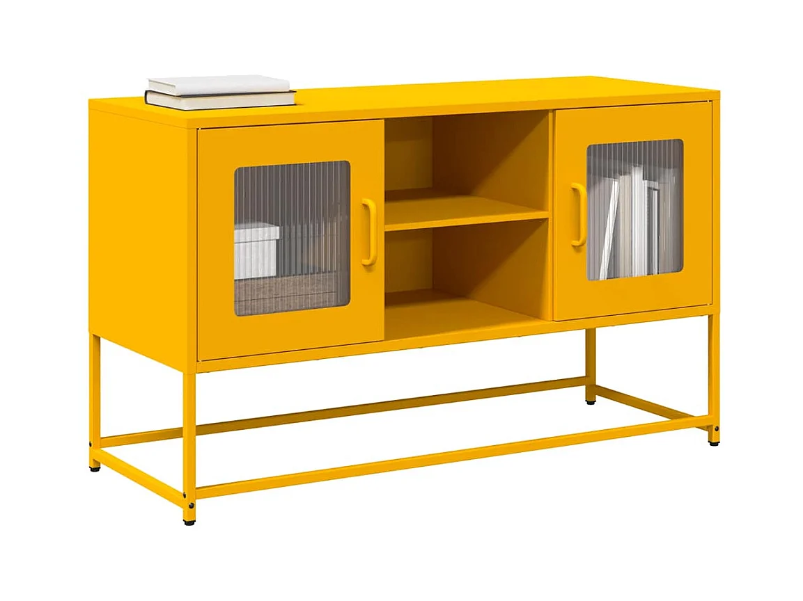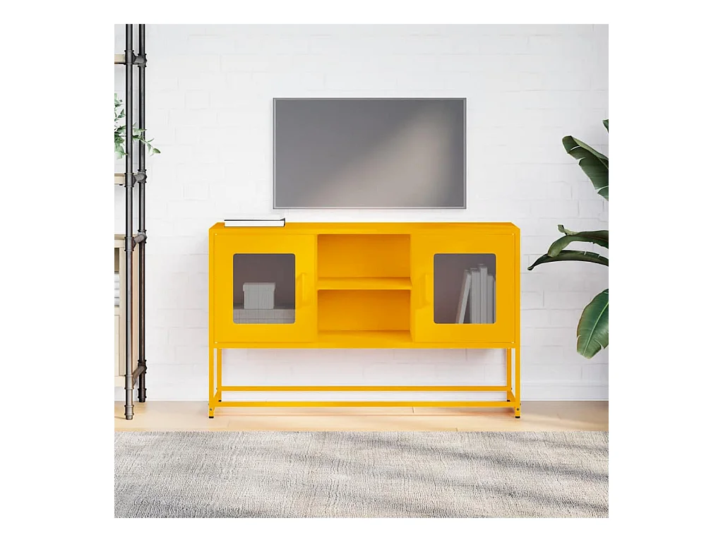 Meuble TV jaune moutarde 100,5x39x60,5 cm acier laminé à froid