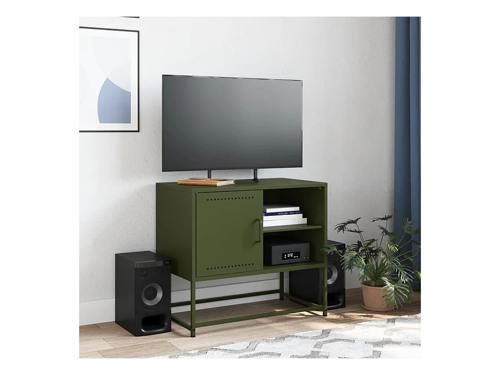 Meuble TV jaune moutarde 68x39x60,5 cm acier laminé à froid