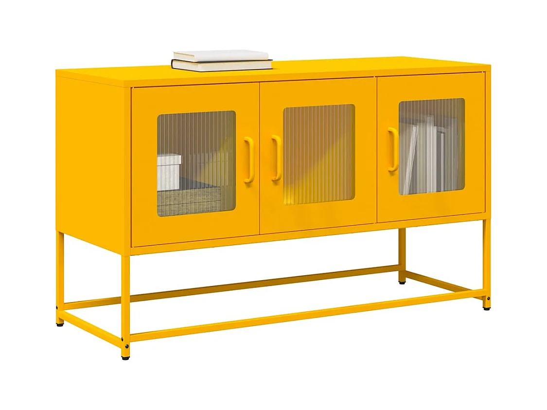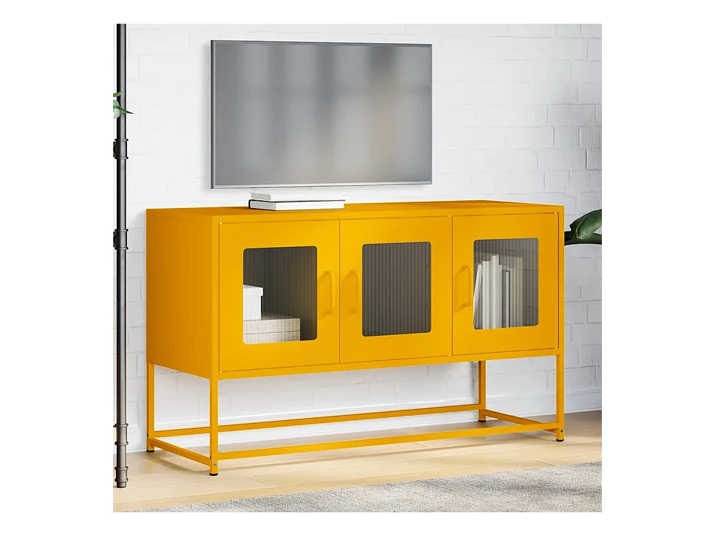 Meuble TV jaune moutarde 100,5x39x60,5 cm acier laminé à froid