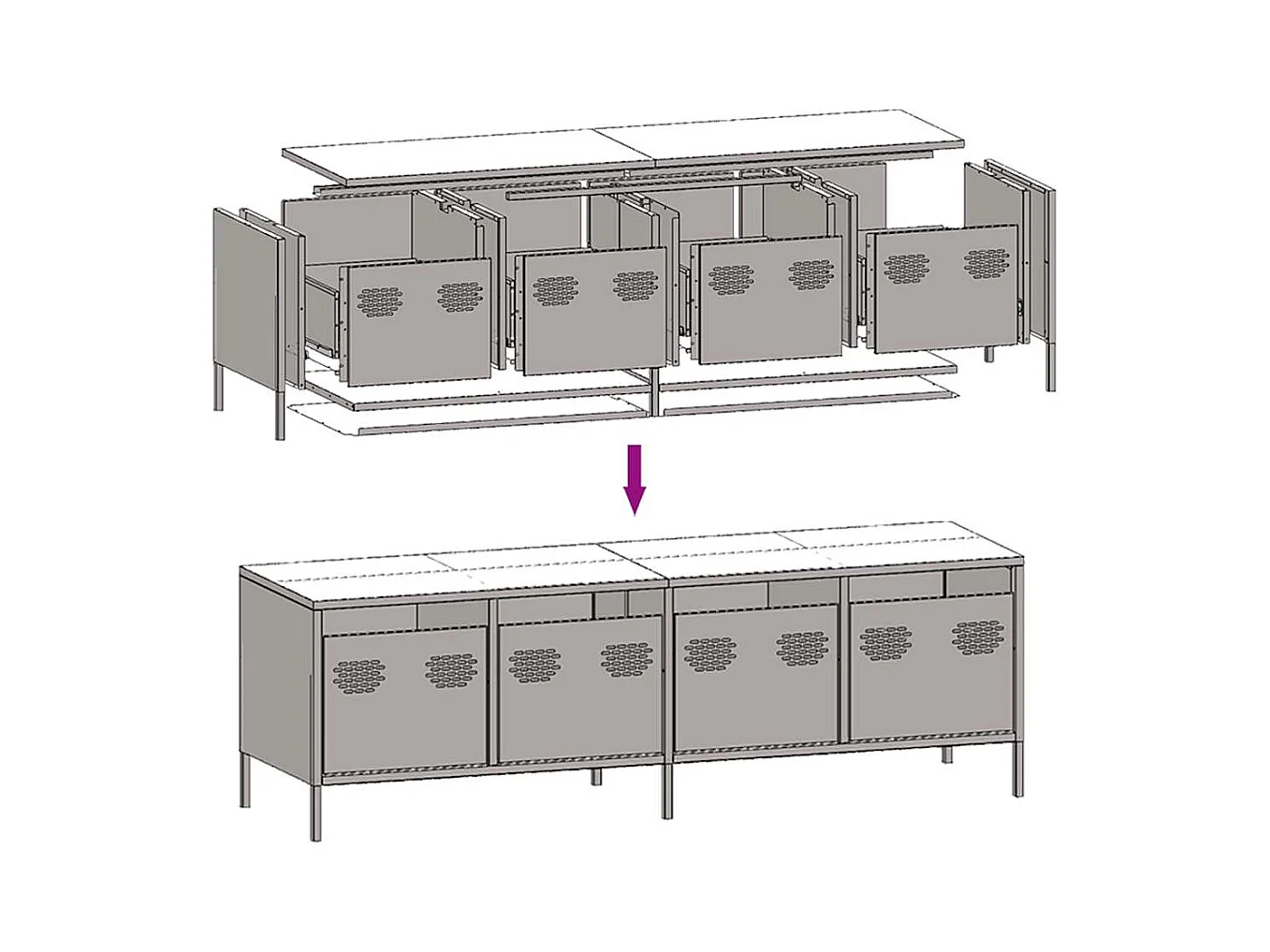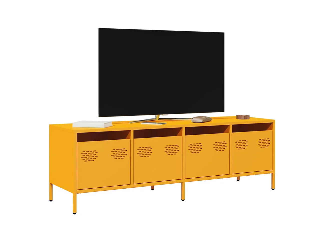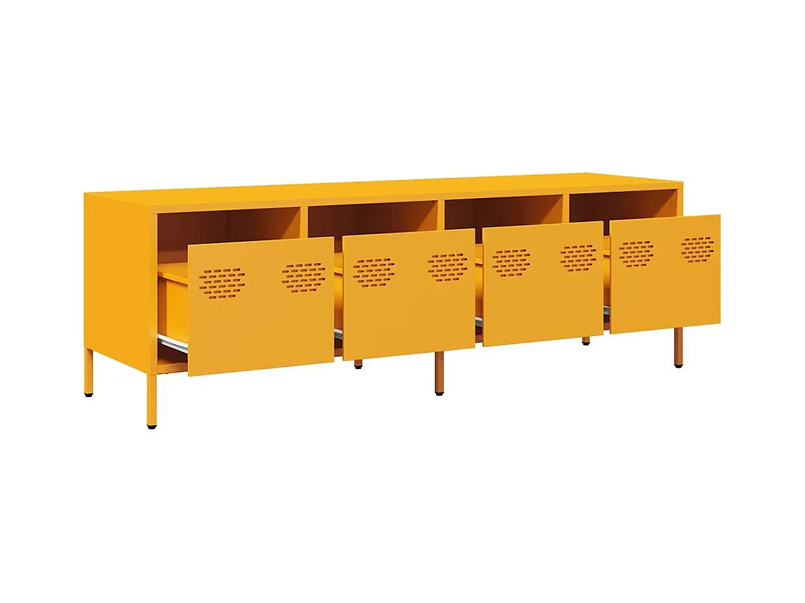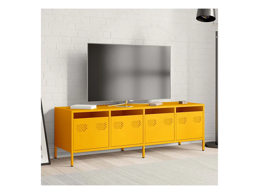 Meuble TV jaune moutarde 135x39x43,5 cm acier laminé à froid