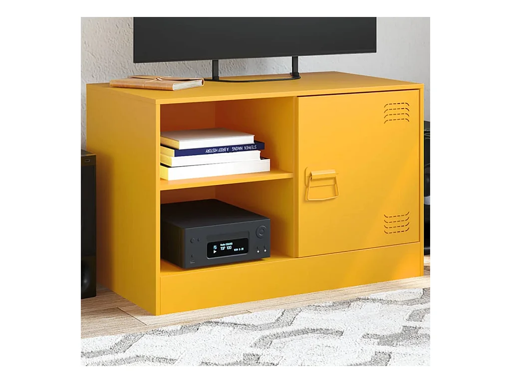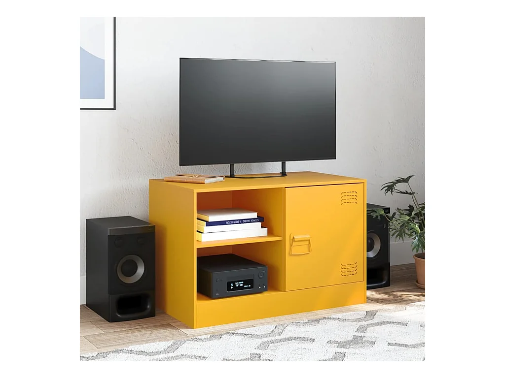 Meuble TV jaune moutarde 99x39x44 cm acier