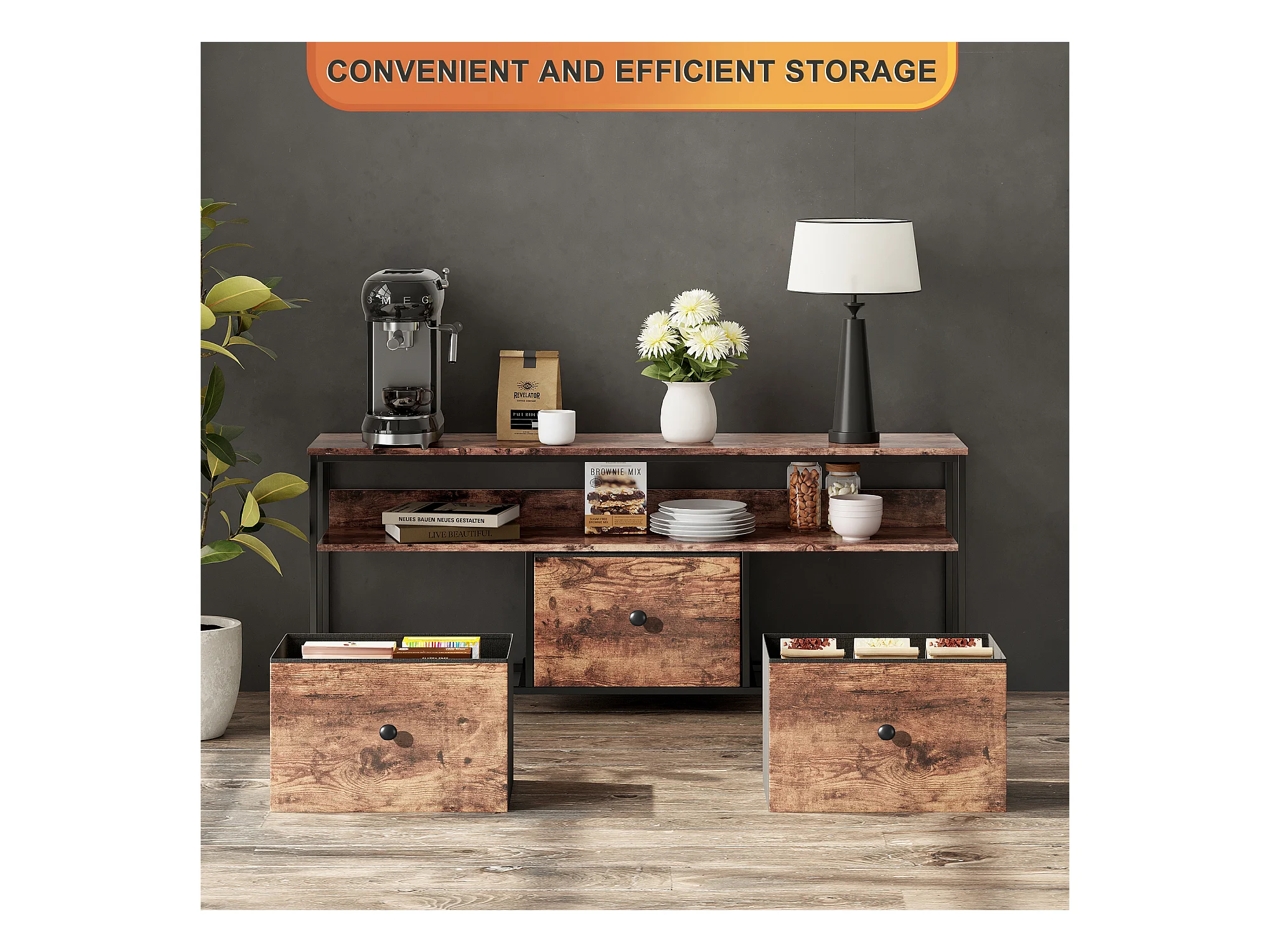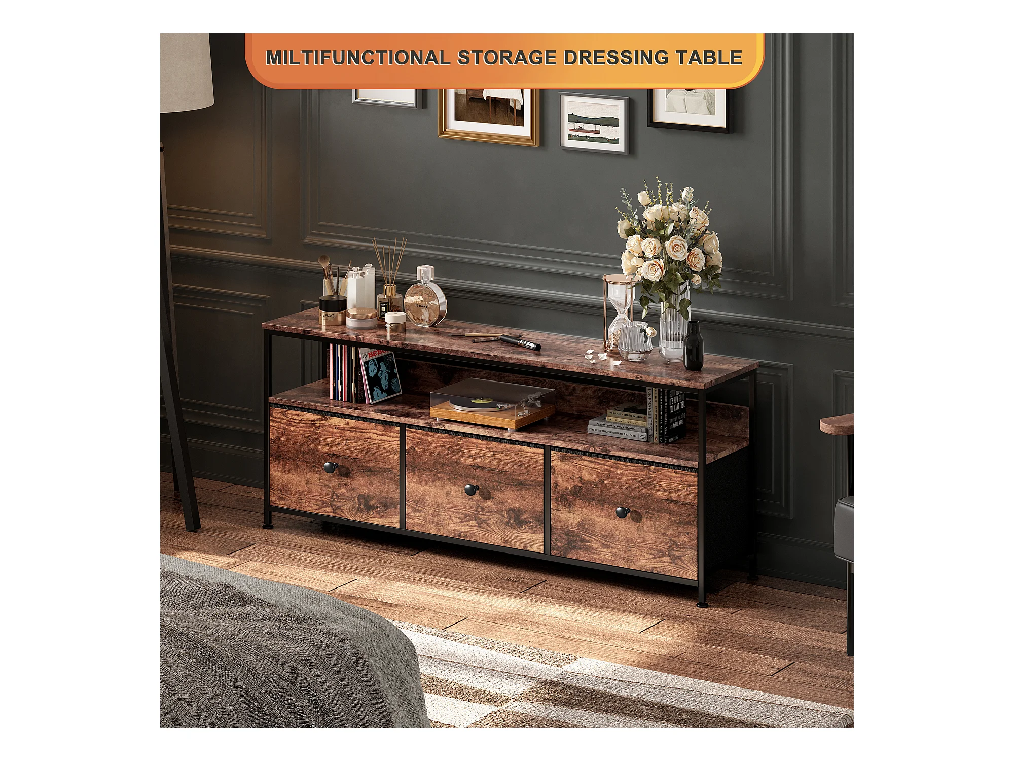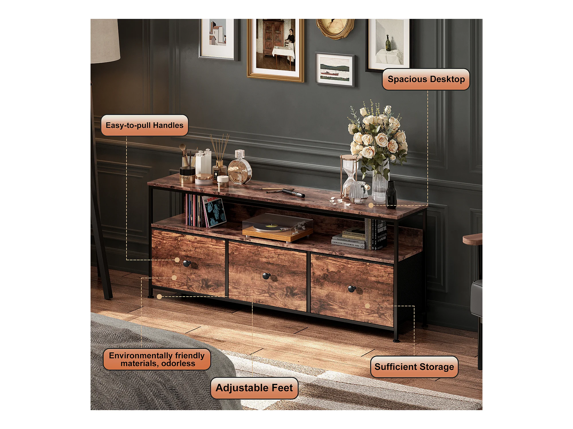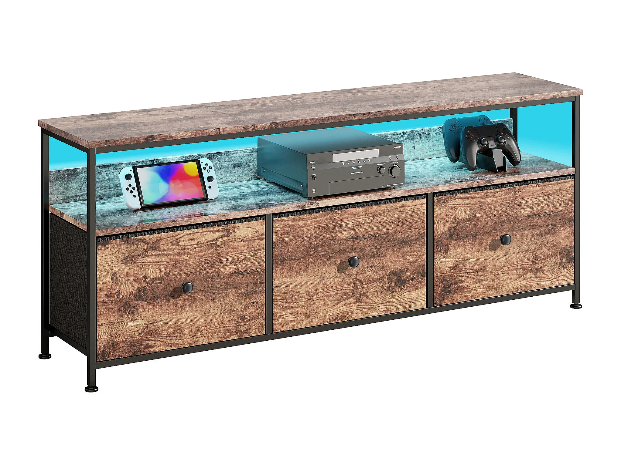 Meuble TV LED avec 3 Tiroirs, 137x30x57cm Banc TV Rétro Buffet, Tiroir Couleur Peau de Tigre