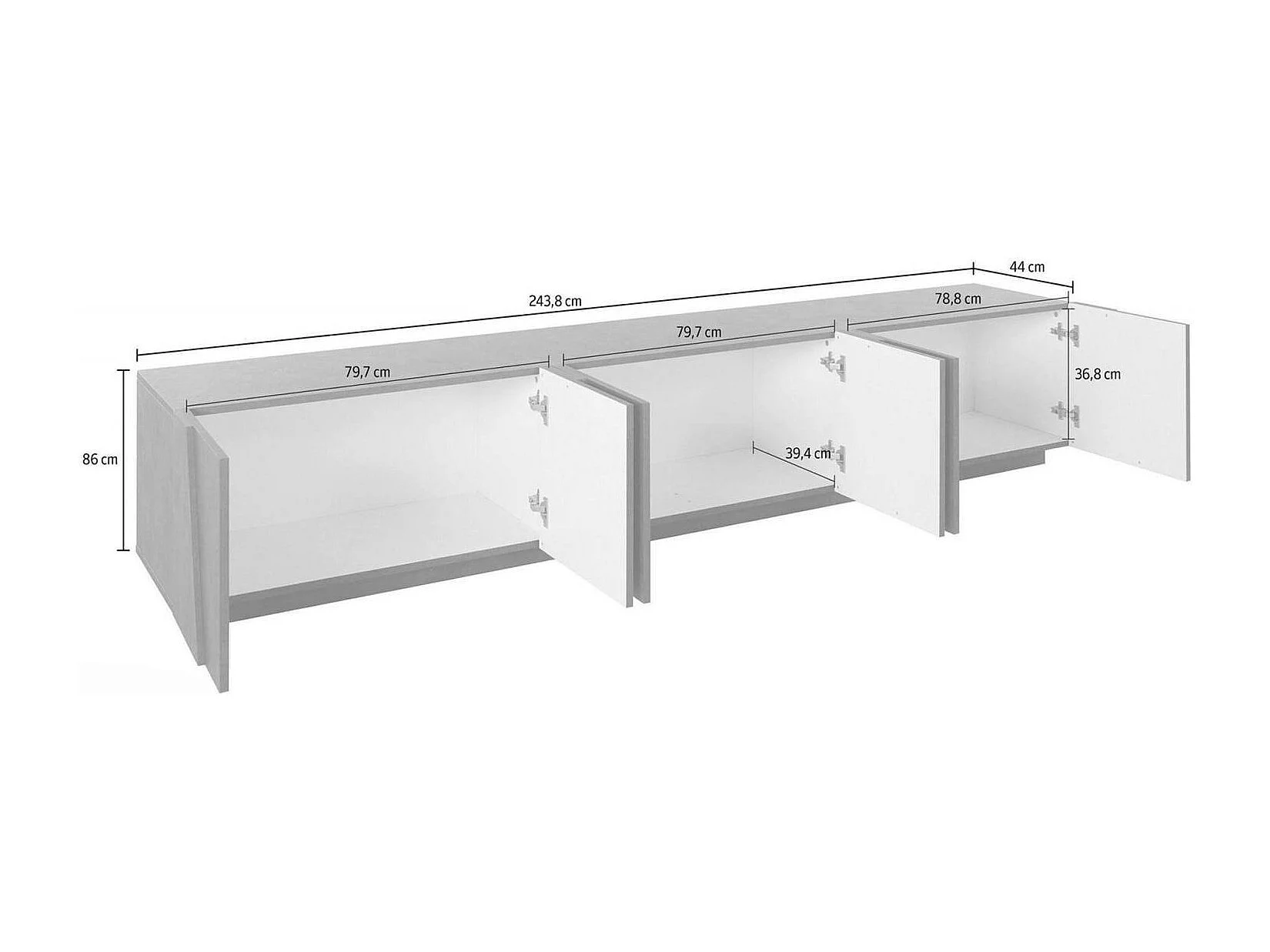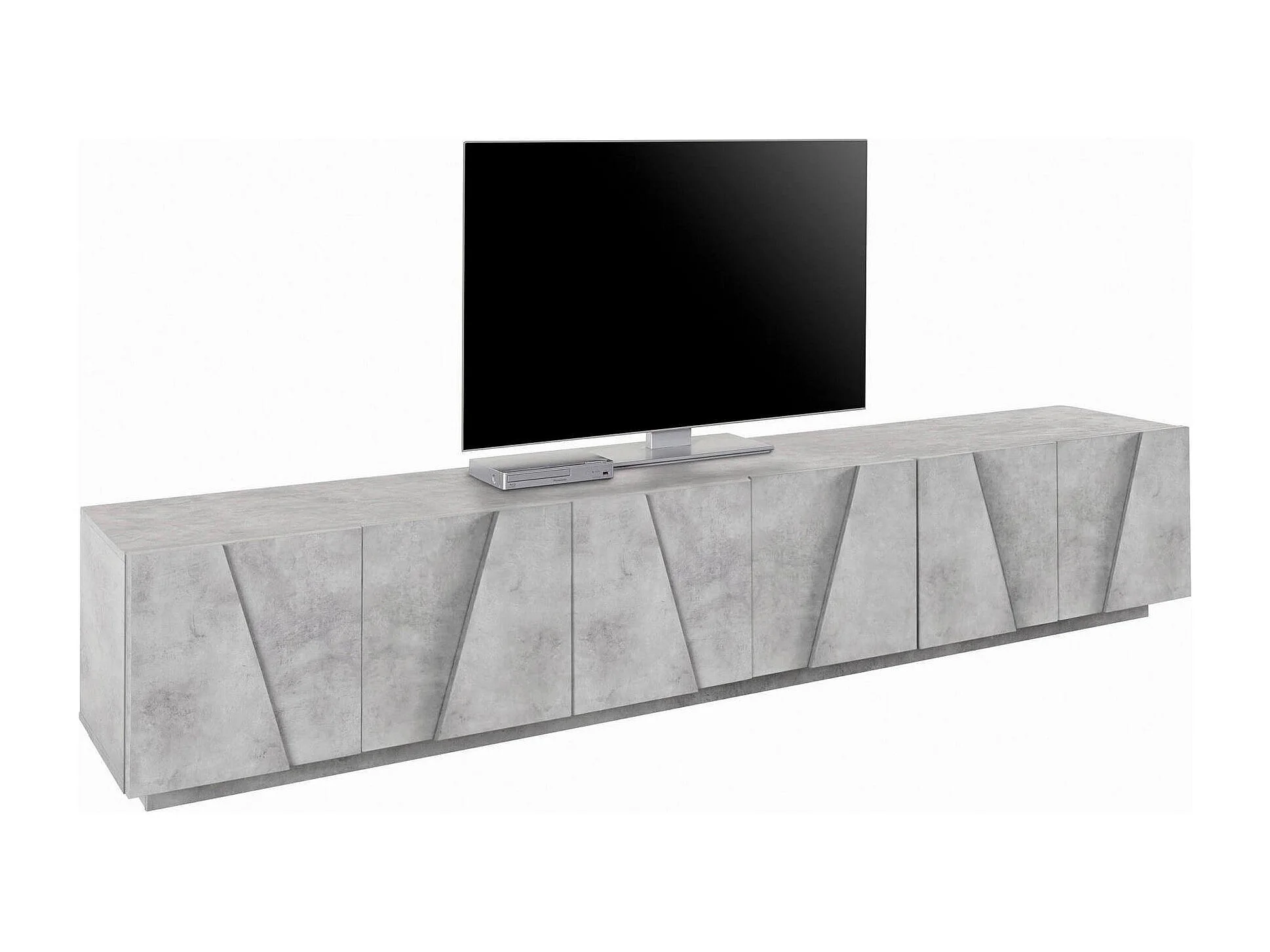 Meuble TV Lucas, Buffet bas de salon, Base pour meuble TV, 100% Made in Italy, 244x44h46 cm, Ciment foncé