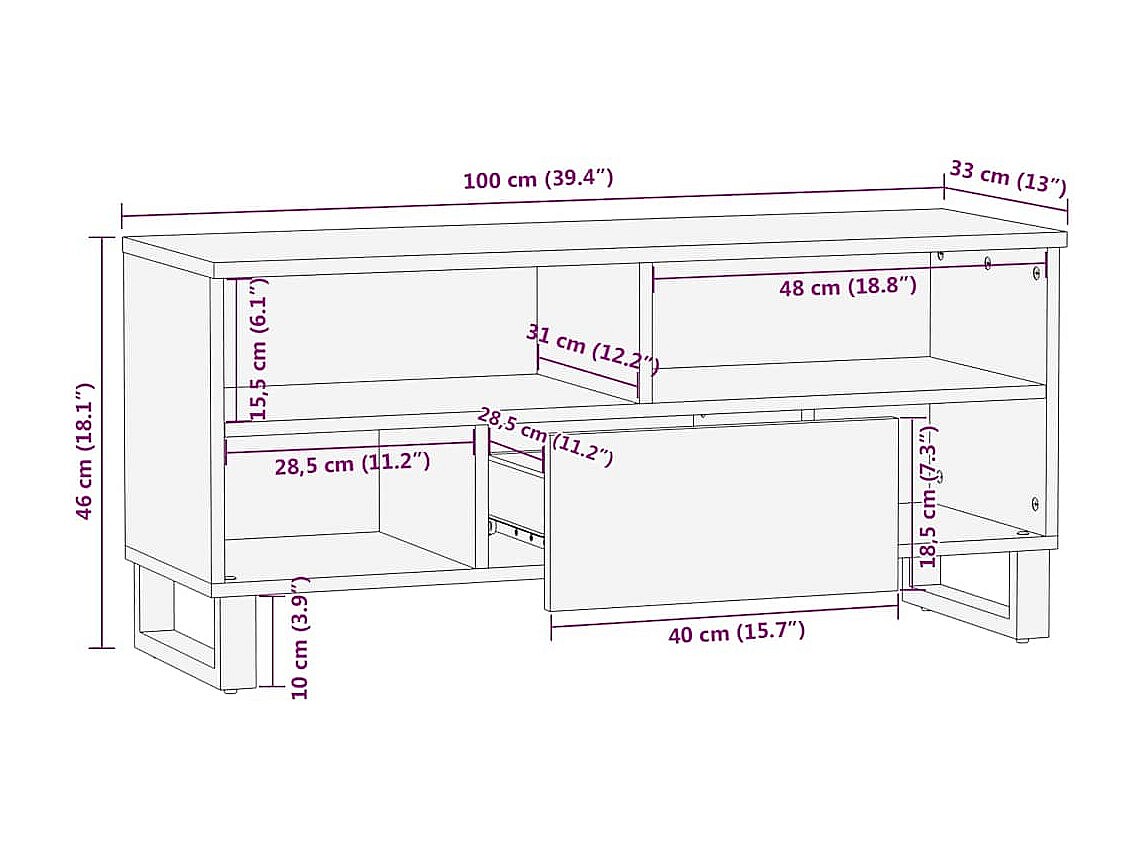 Meuble TV Marron 105 x 33 x 46 cm bois de manguier massif