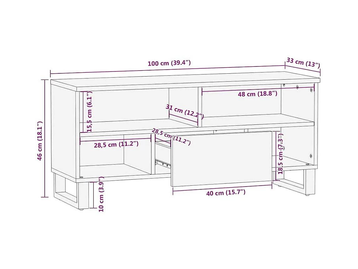 Meuble TV Marron 100 x 33 x 46 cm bois de manguier massif
