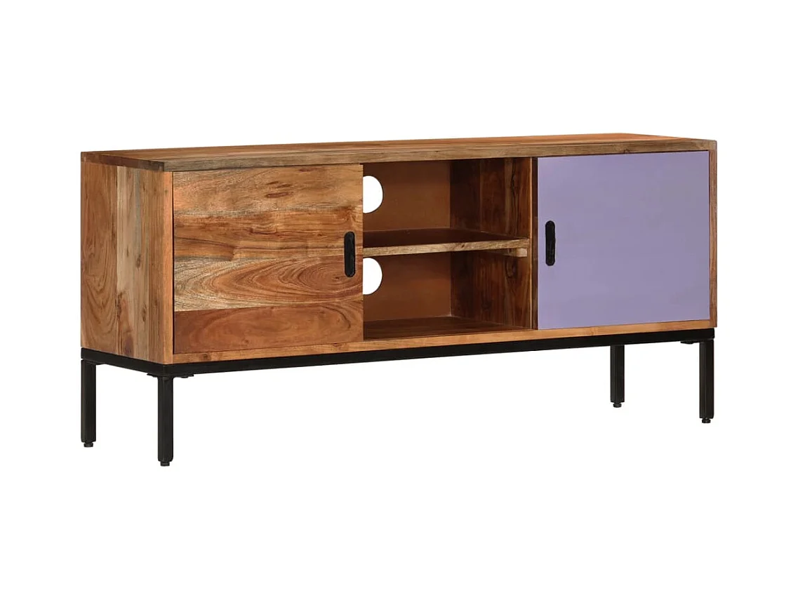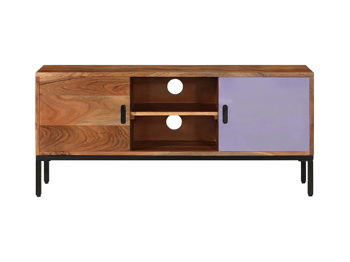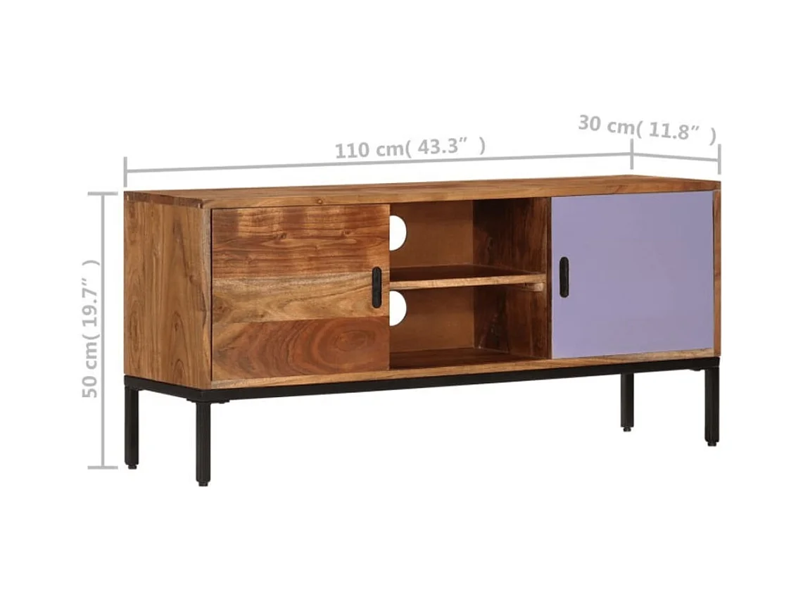 Meuble TV Marron miel et gris 110x30x50 cm Bois massif d'acacia