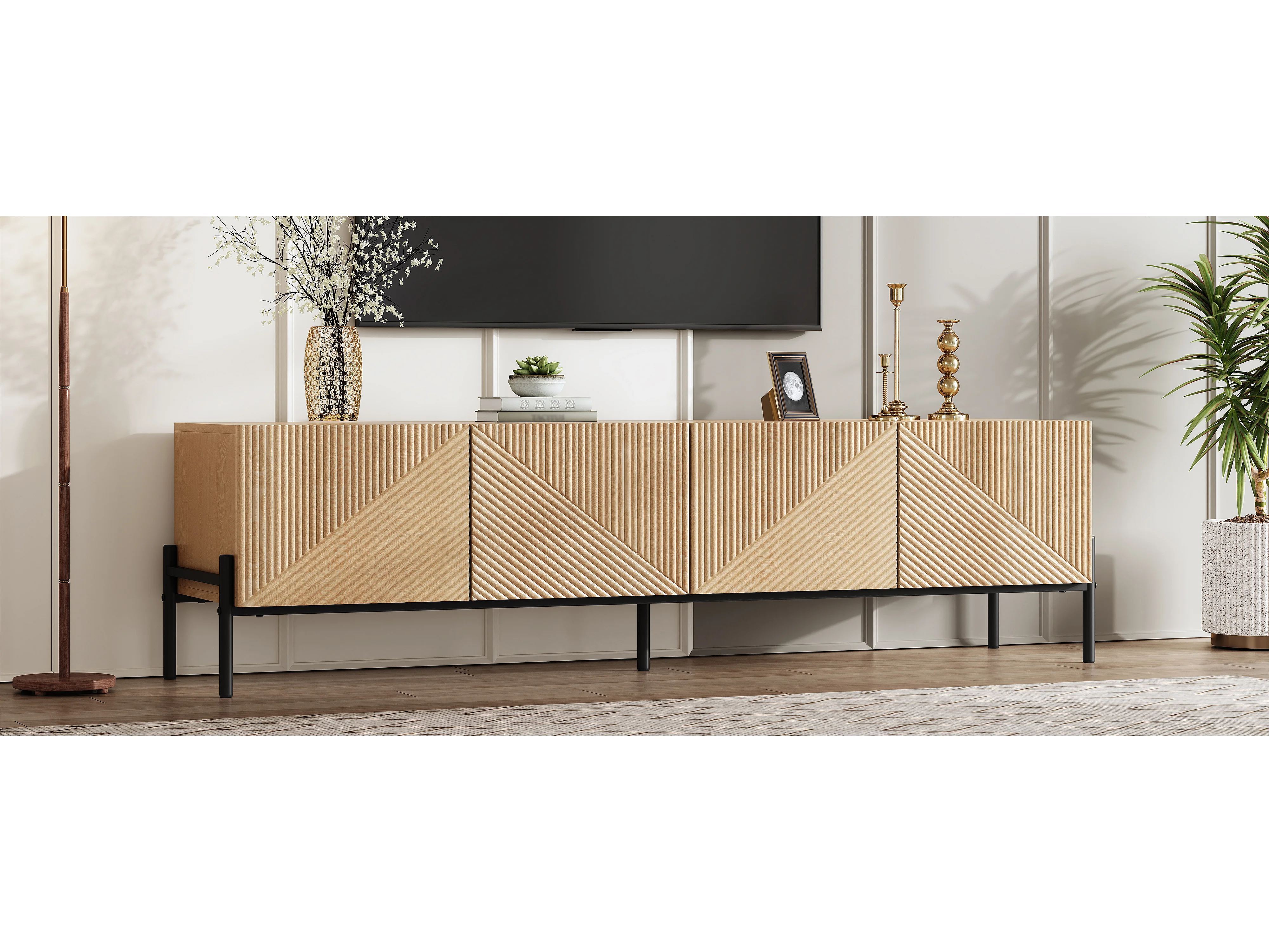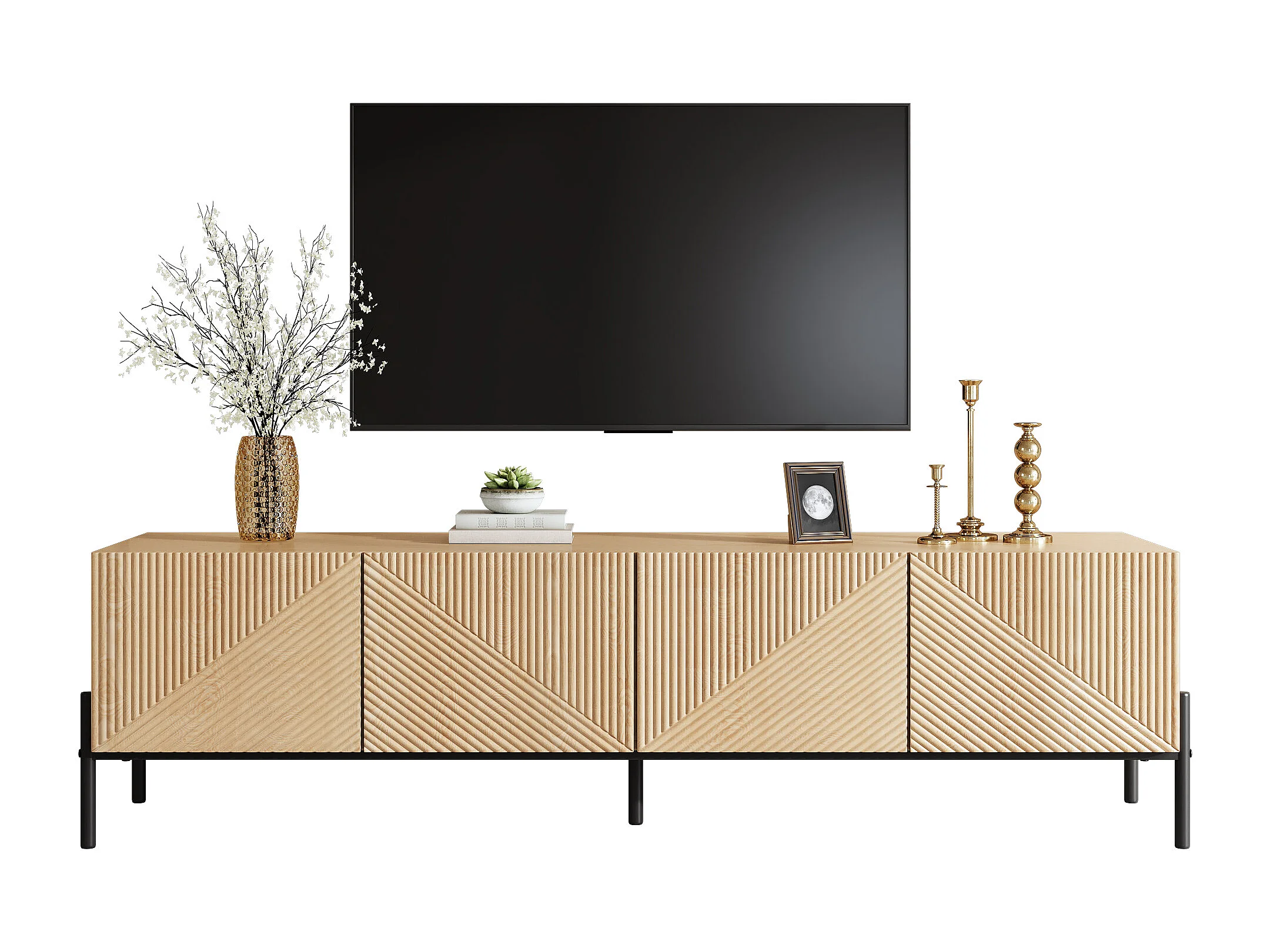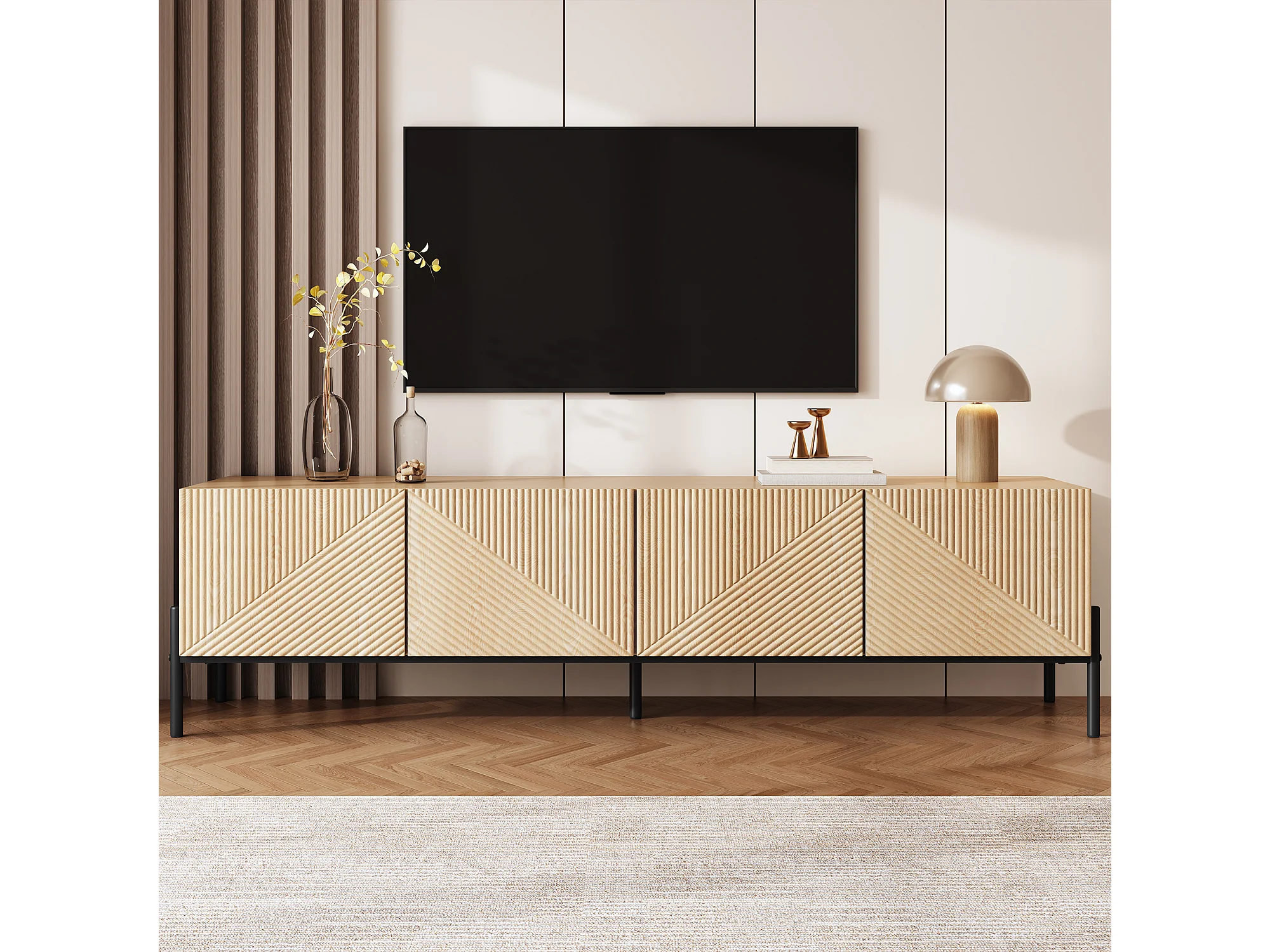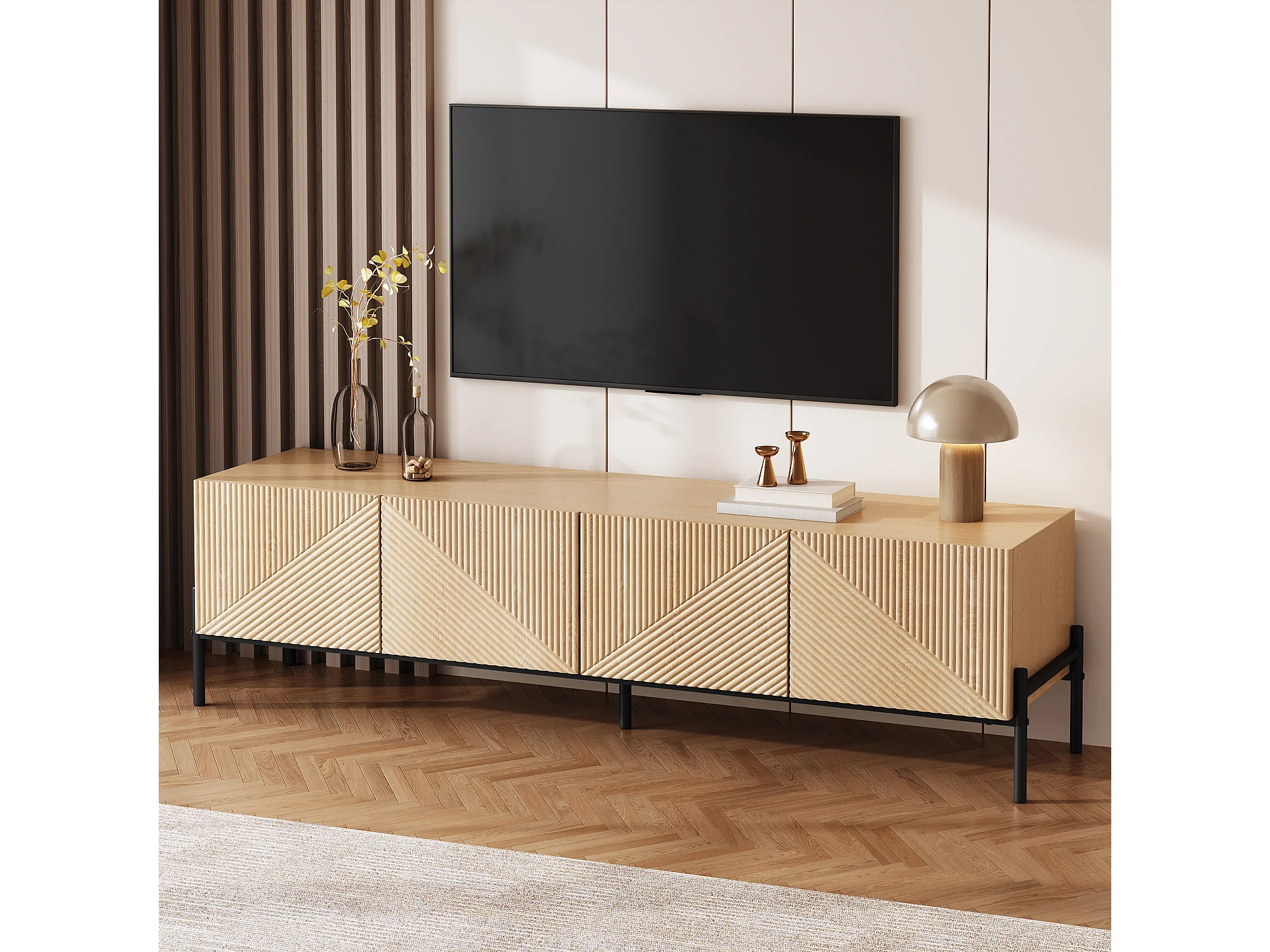 Meuble TV moderne - 163.5 x 40 x 45 cm - avec 4 portes - design géométrique et texture 3D - MDF - naturel