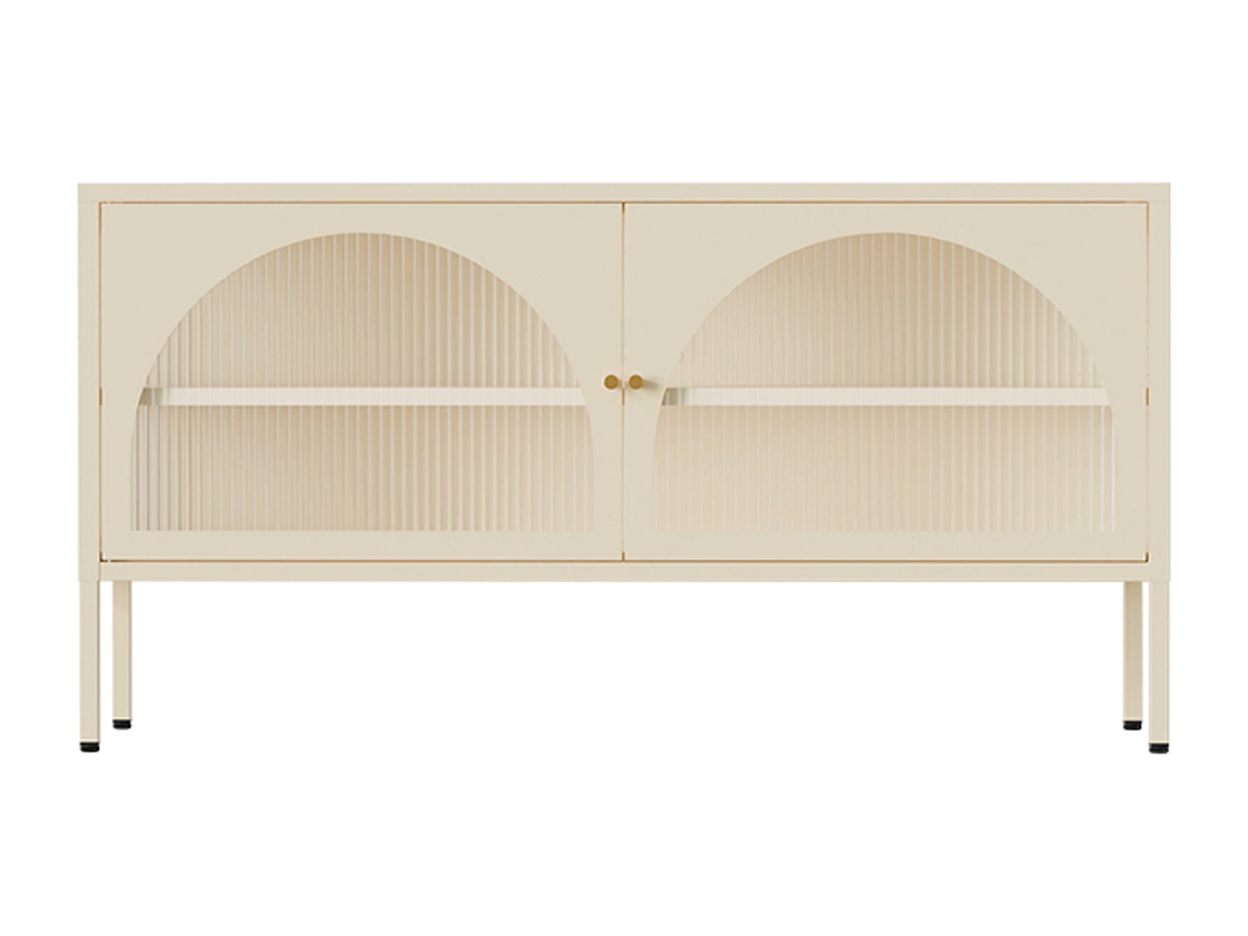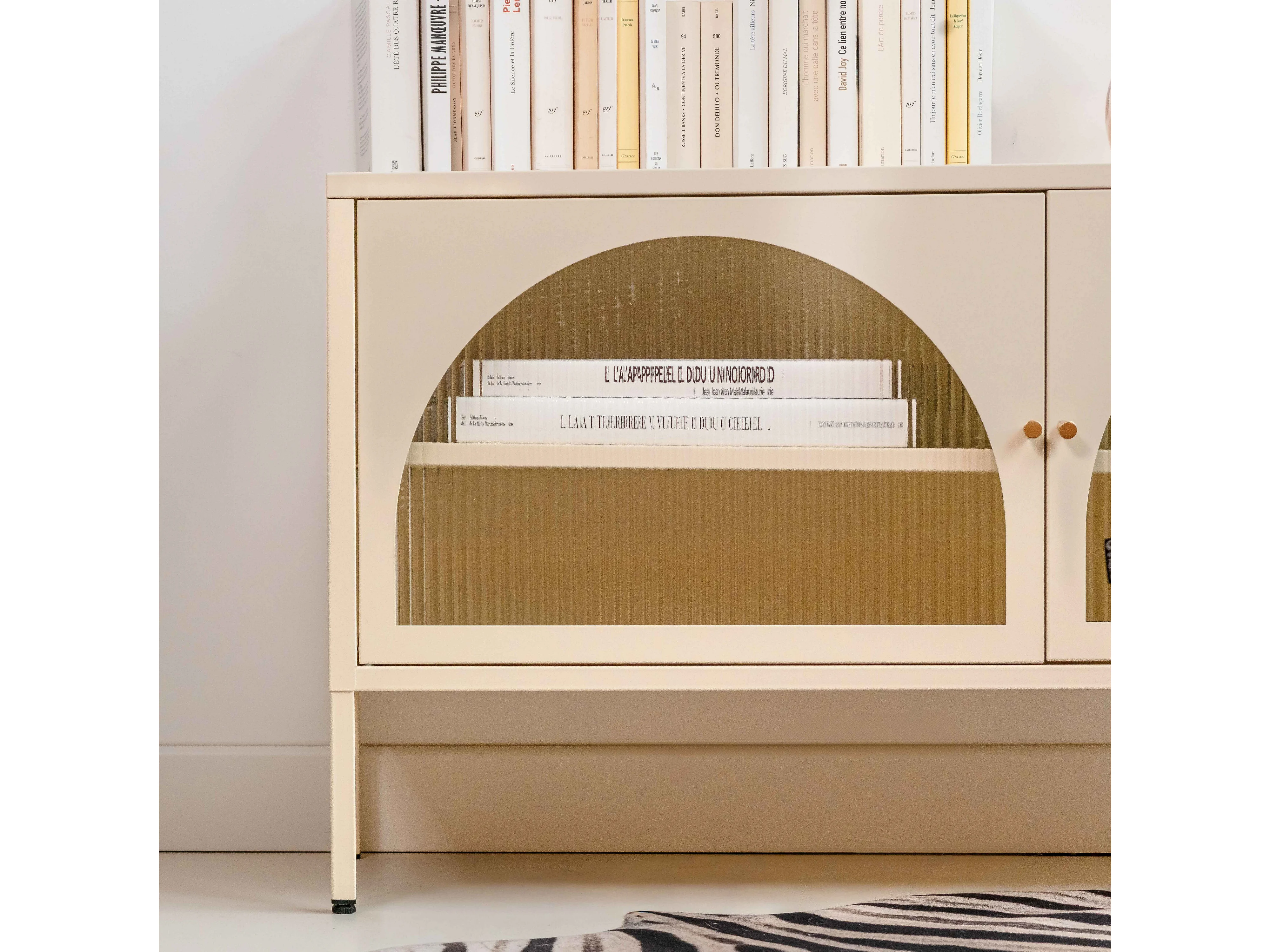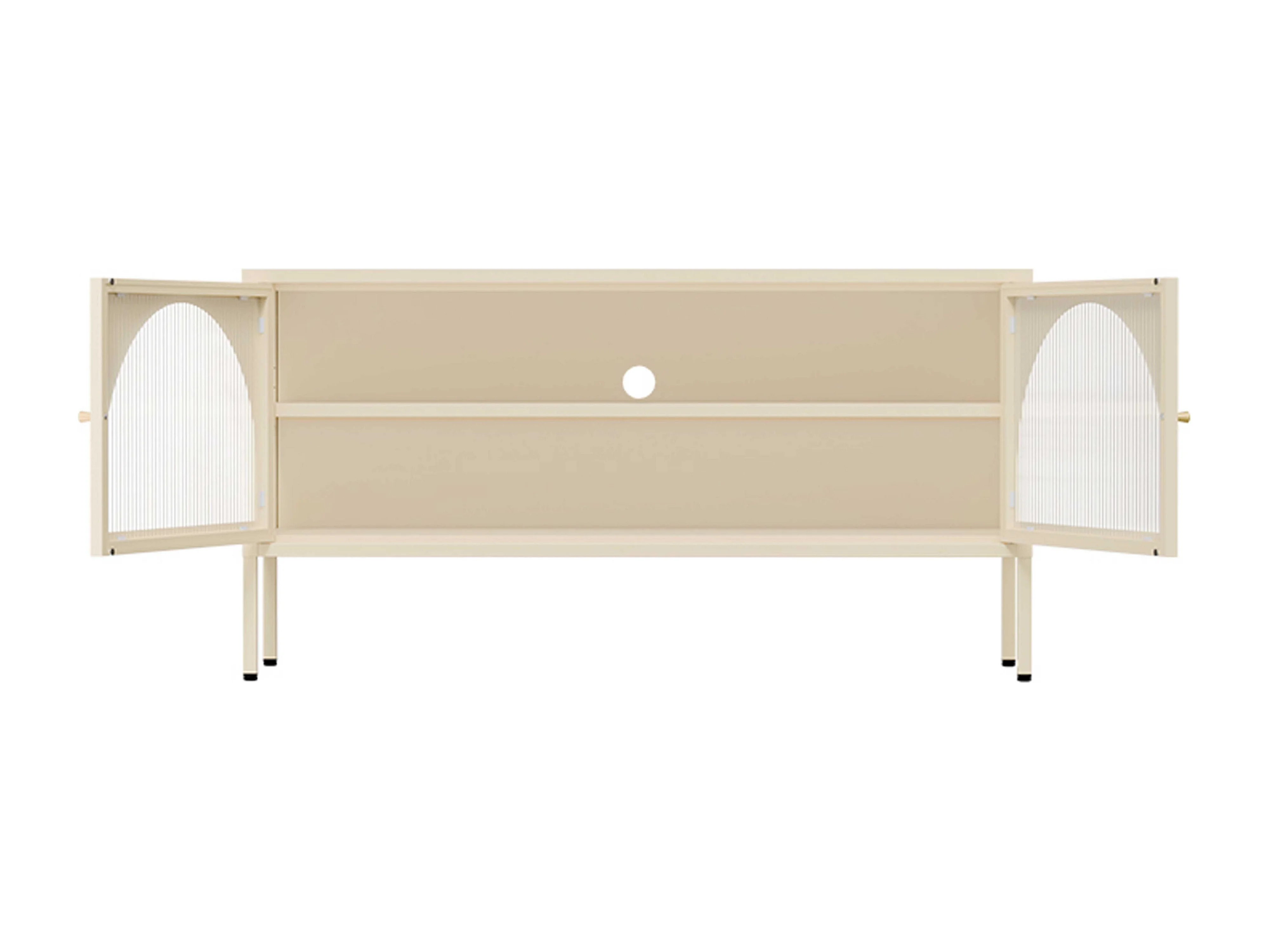 Meuble TV moderne 2 portes L115 cm en métal écru