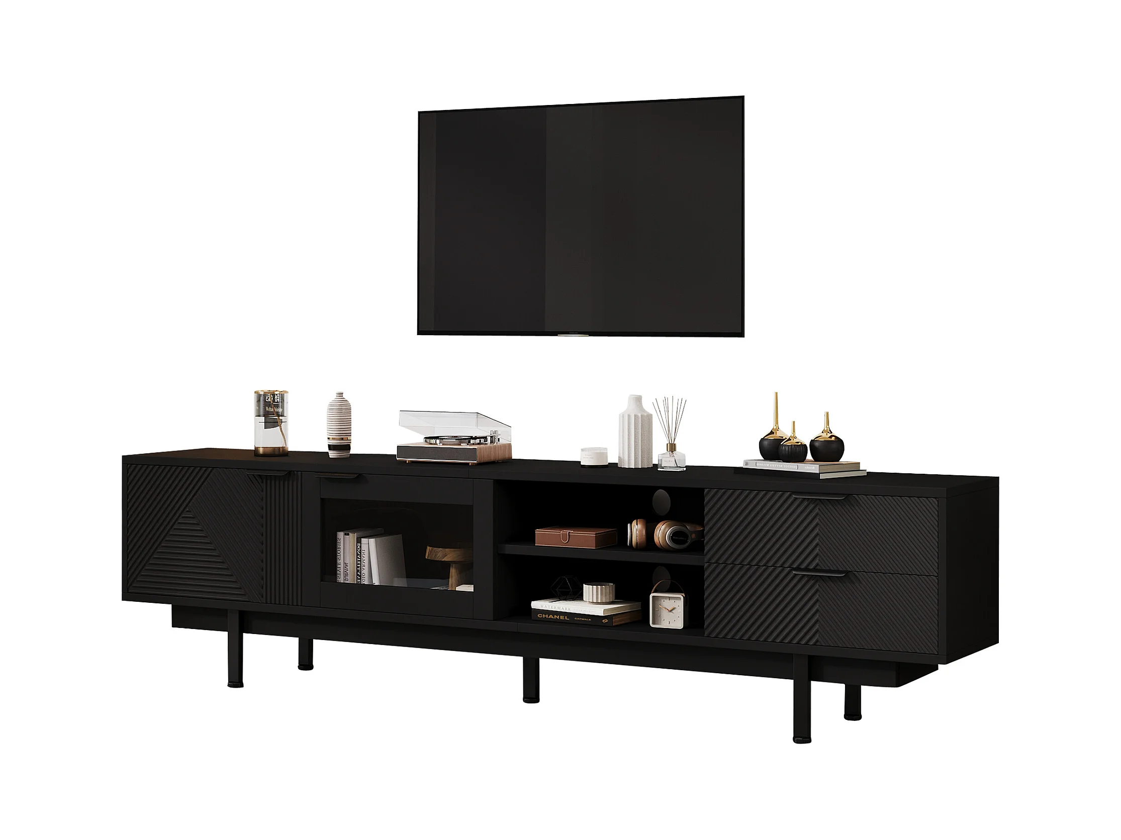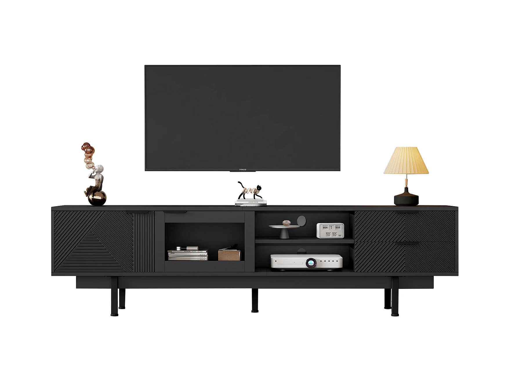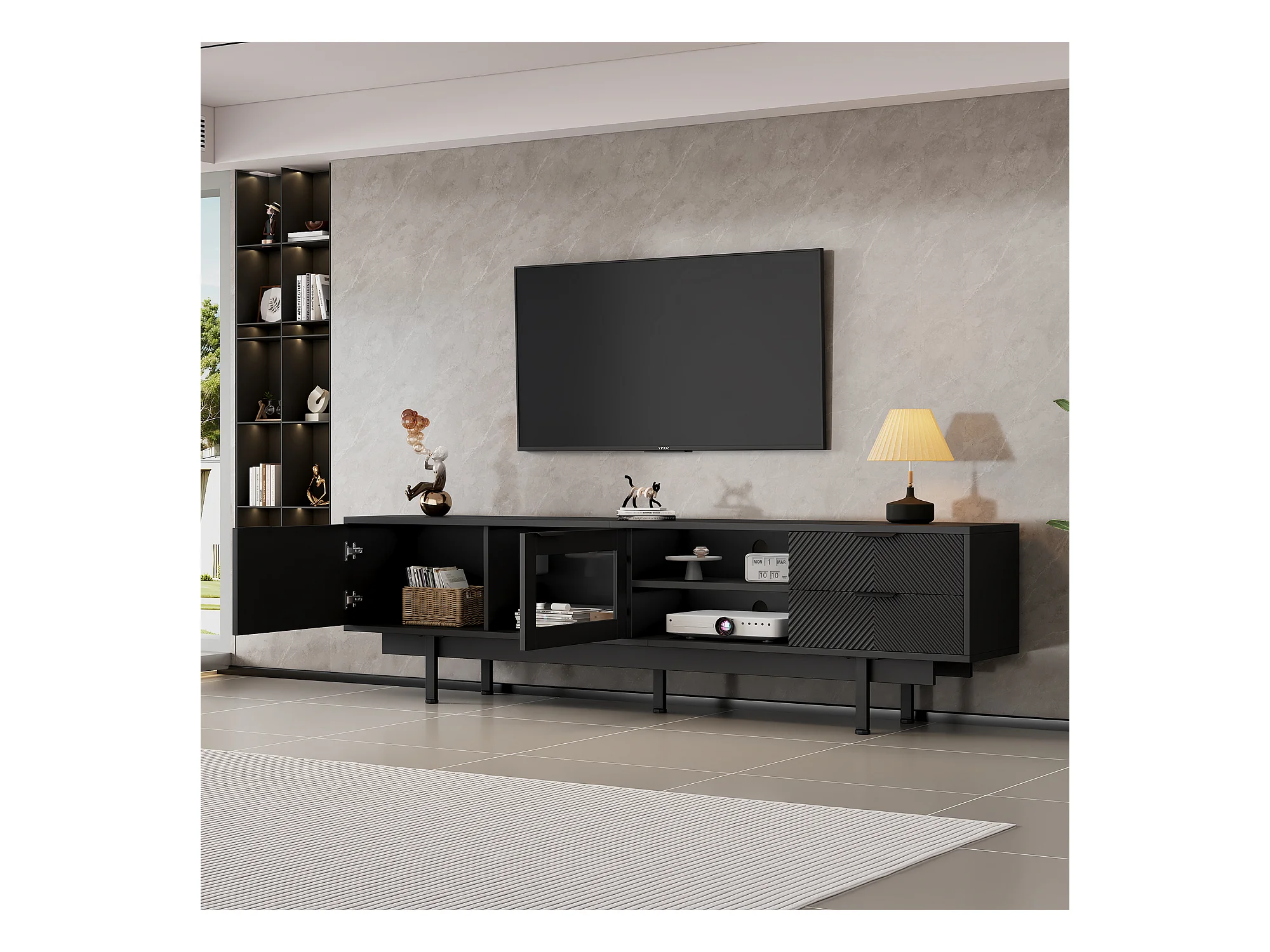 Meuble TV moderne - 200 x 40 x 50.5 cm - avec 2 portes + 2 tiroirs - pour TV 80 pouces - aggloméré - noir