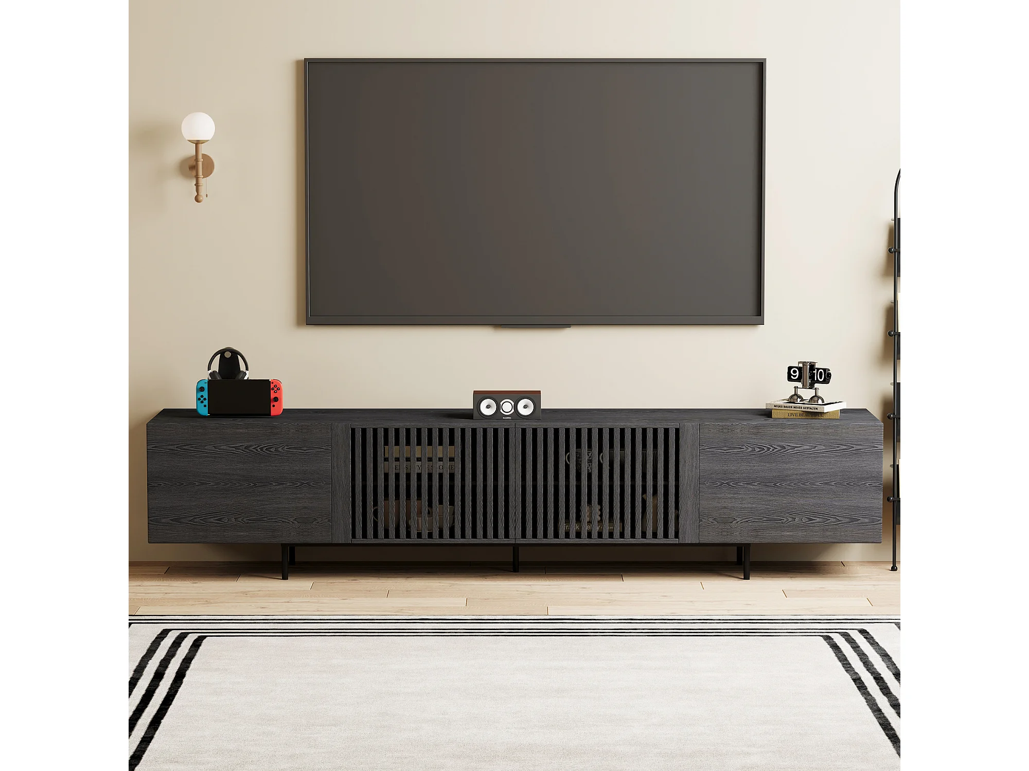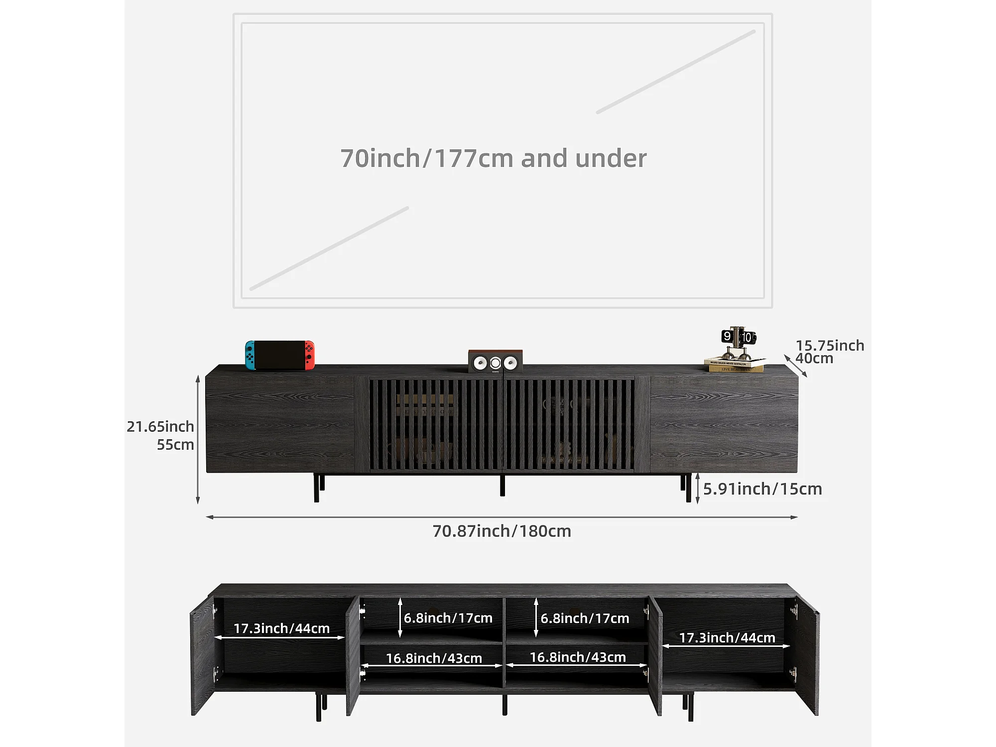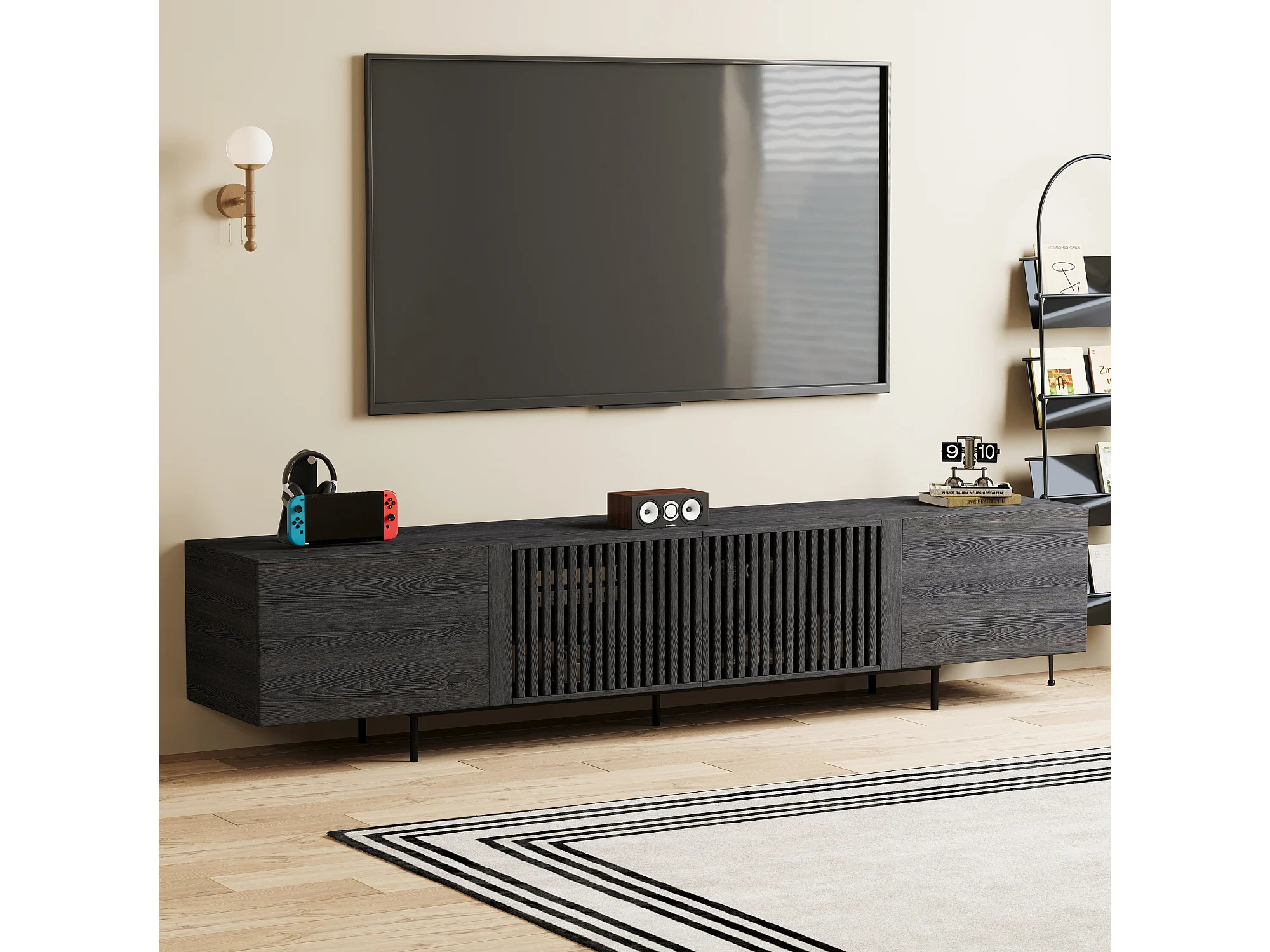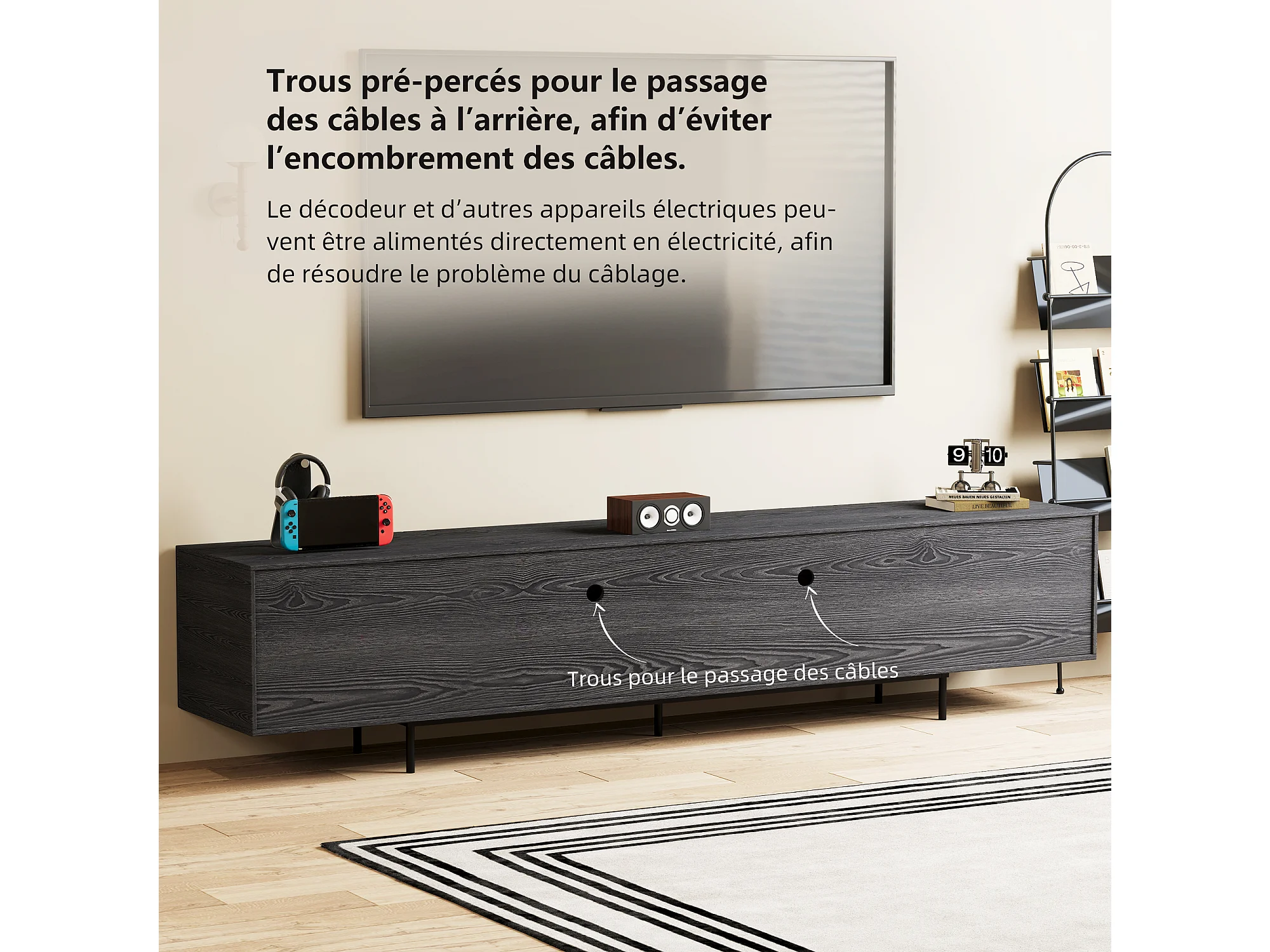 Meuble TV moderne 75 pouces, avec grand espace de rangement, console multimédia de 180 cm, pour salon et chambre, couleur noire