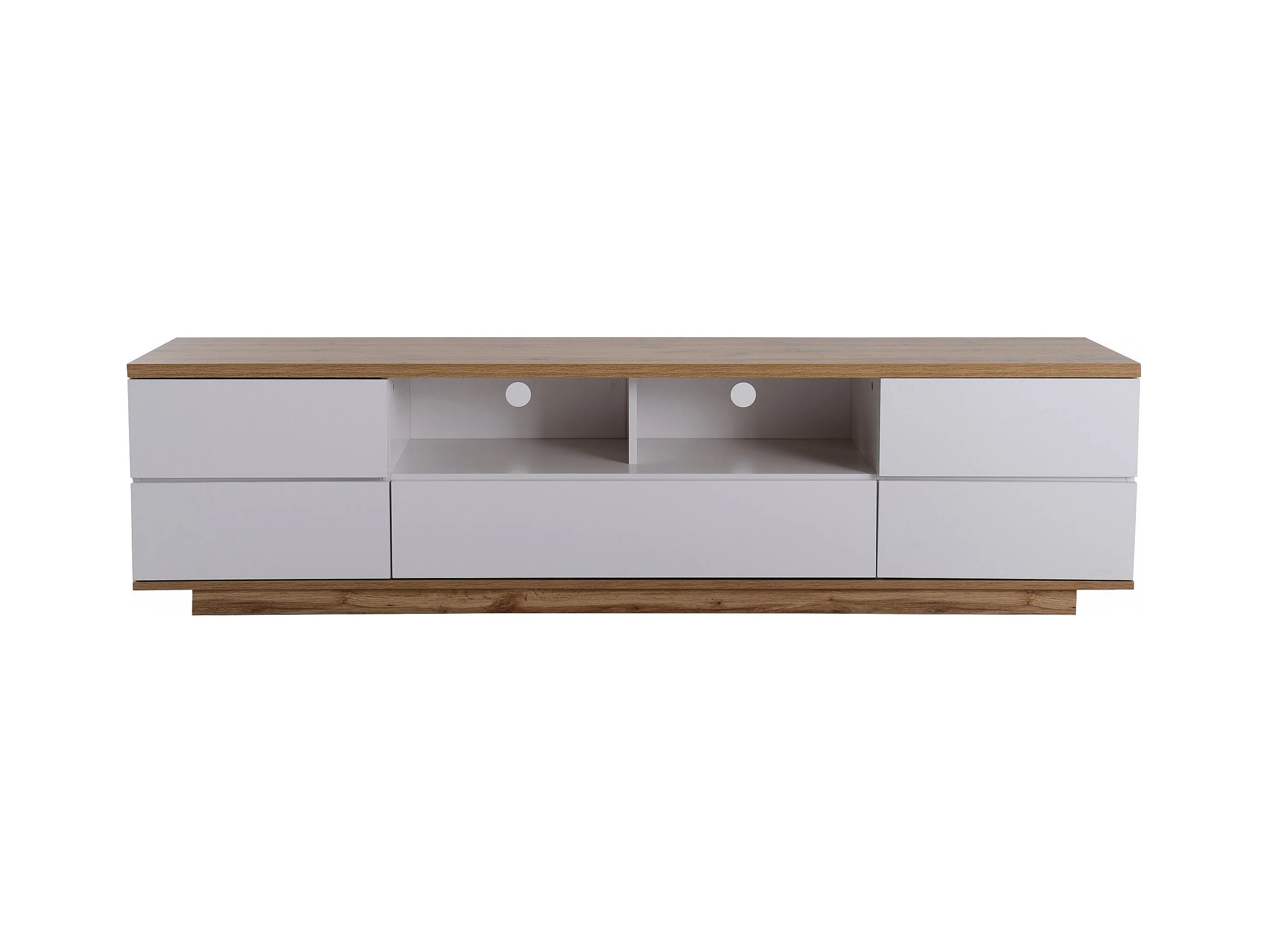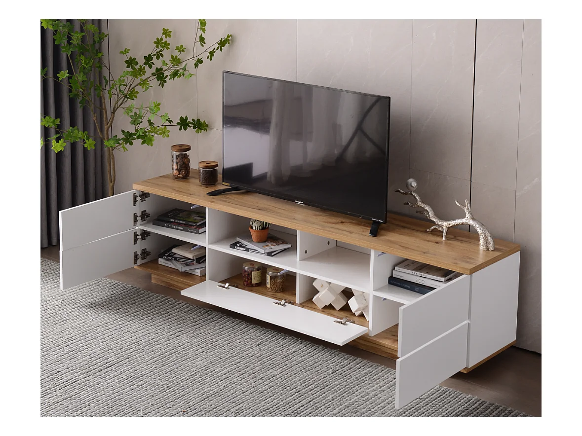 Meuble TV moderne à blocage de couleur, finition brillante, avec grain de bois, 180 cm