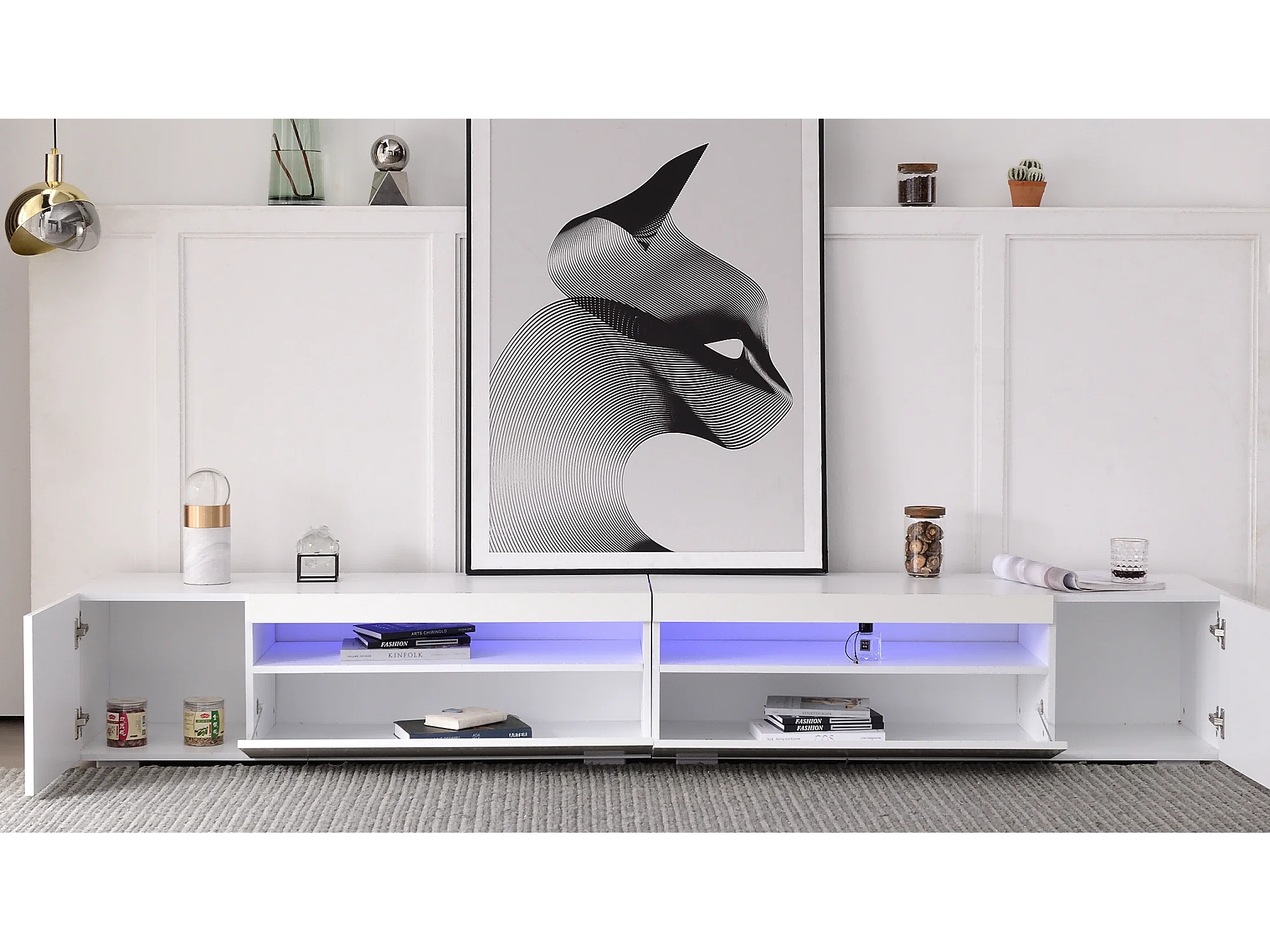Meuble TV moderne avec 4 portes et 2 niches - LEDs - Longueur 240cm - bois MDF - Coloris blanc