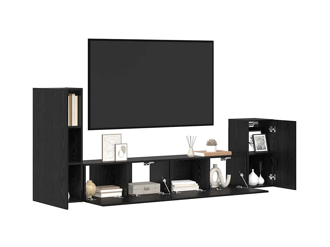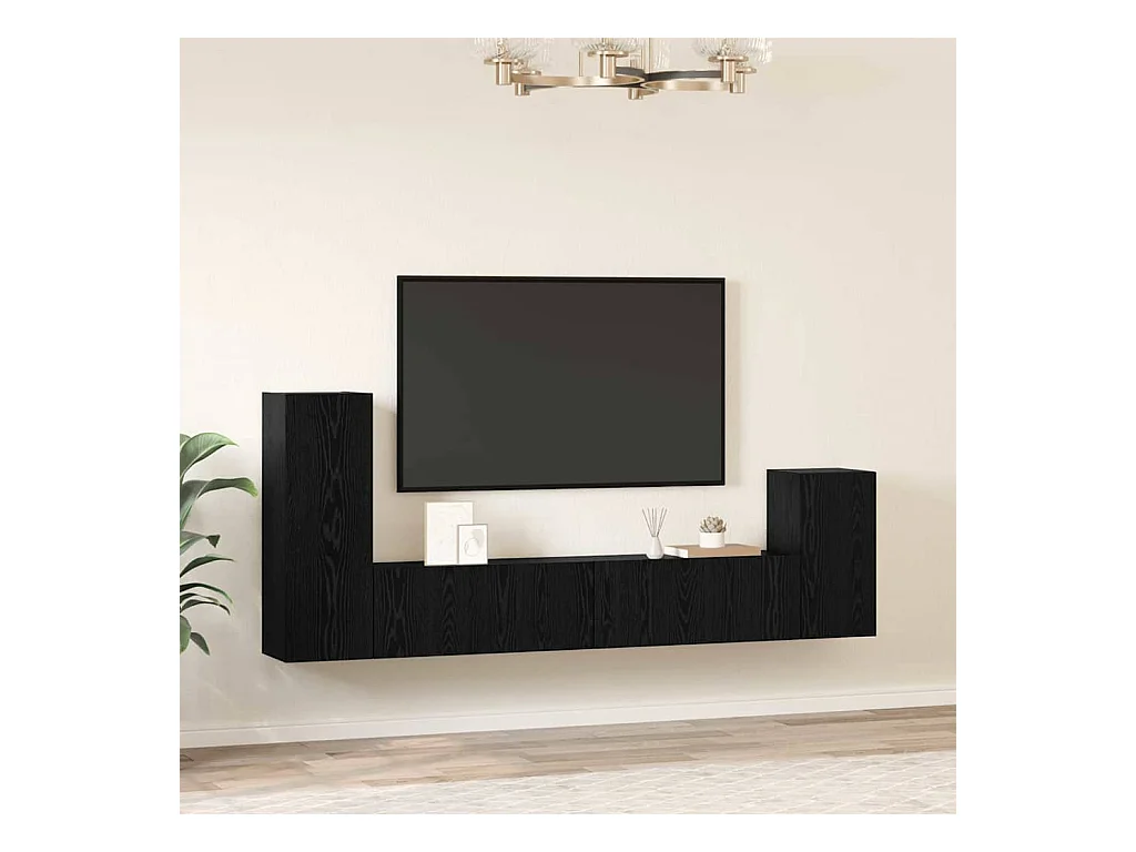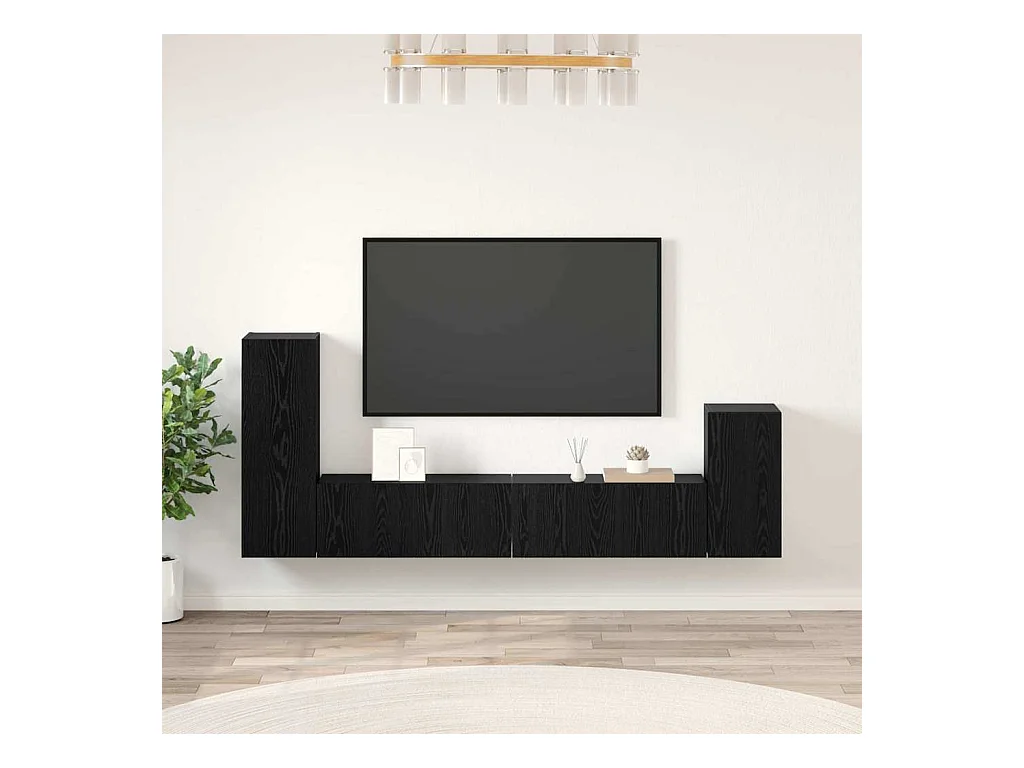 Meuble TV mural 4 pcs Chêne Noir Bois d'ingénierie