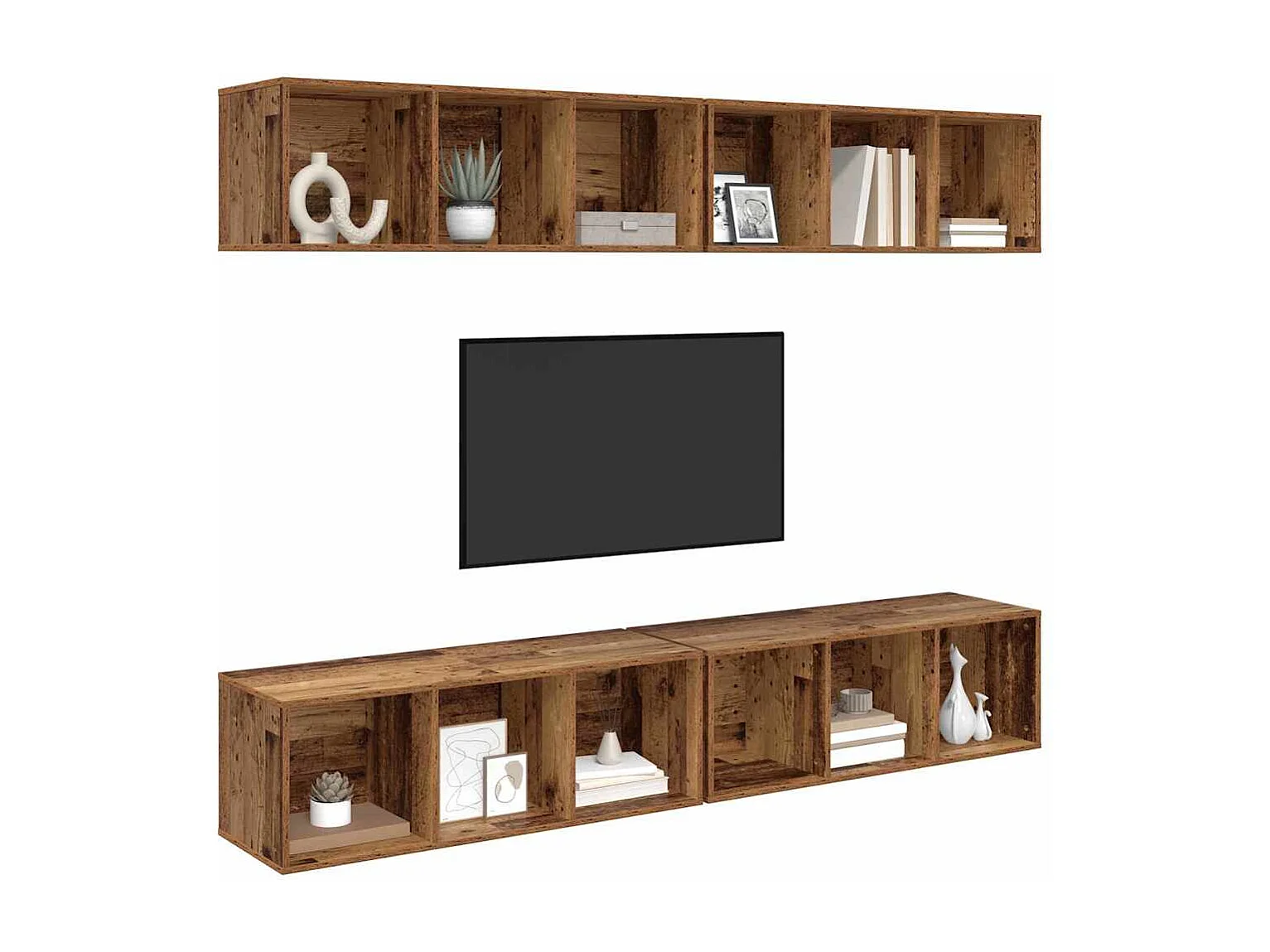 Meuble TV mural Montage mural 4 pièces Vieux bois 37 x 37 x 72 cm