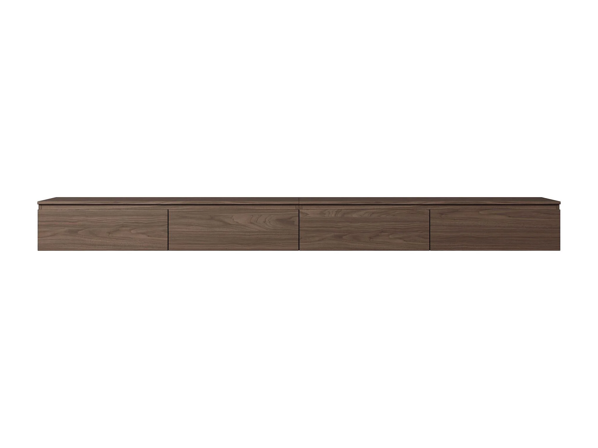 Meuble TV mural à 4 abattants – aspect bois noyer – 300 cm – BEMMI